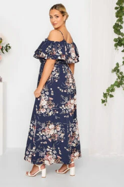 YOURS LONDON Curve Navy Blue Floral Ruffle Bardot Maxi Dress
