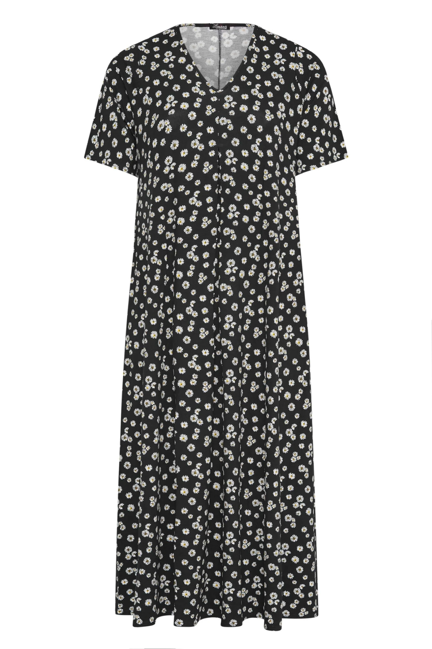 LIMITED COLLECTION Curve Black Daisy Pleat Front Maxi Dress