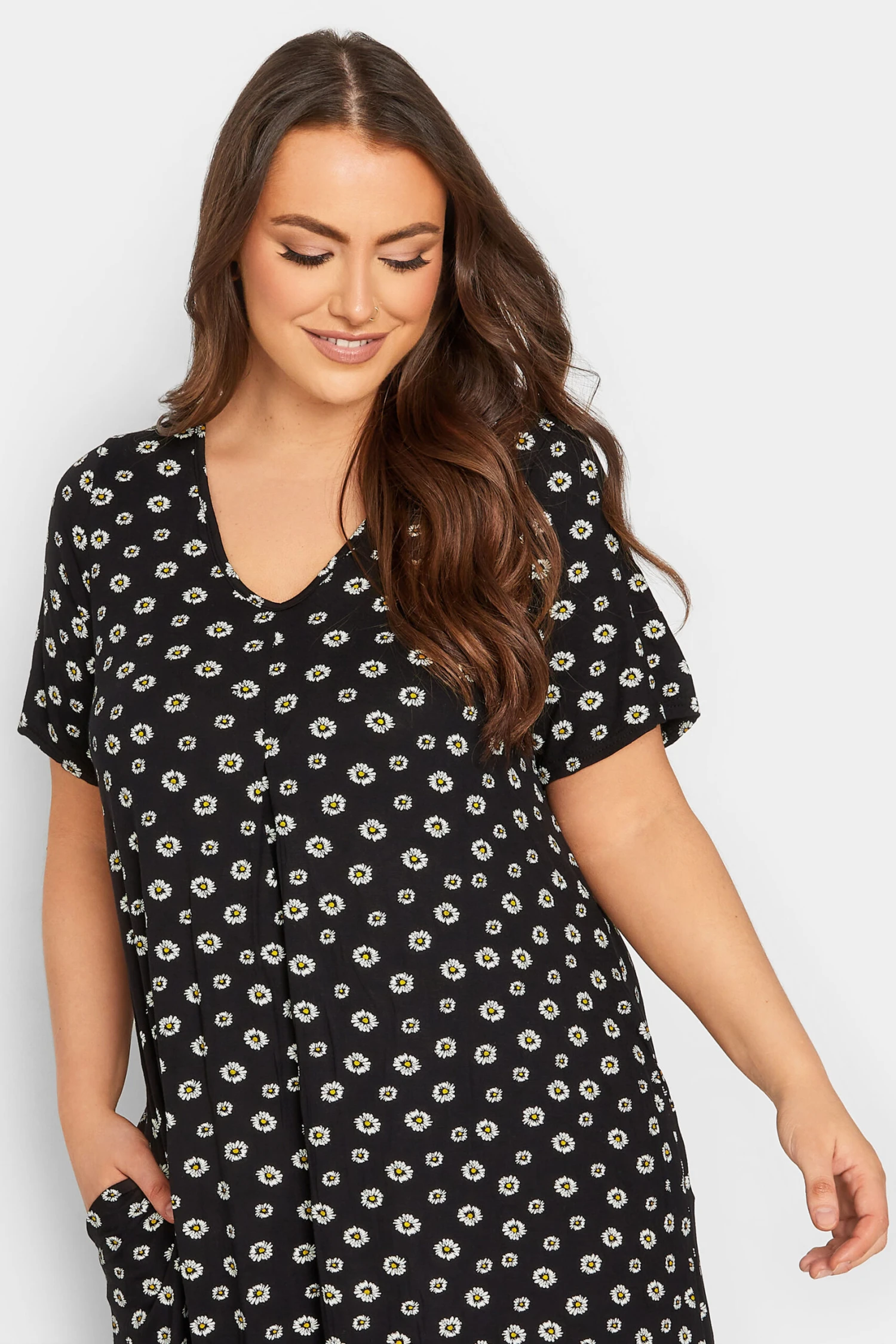 LIMITED COLLECTION Curve Black Daisy Pleat Front Maxi Dress - Image 6