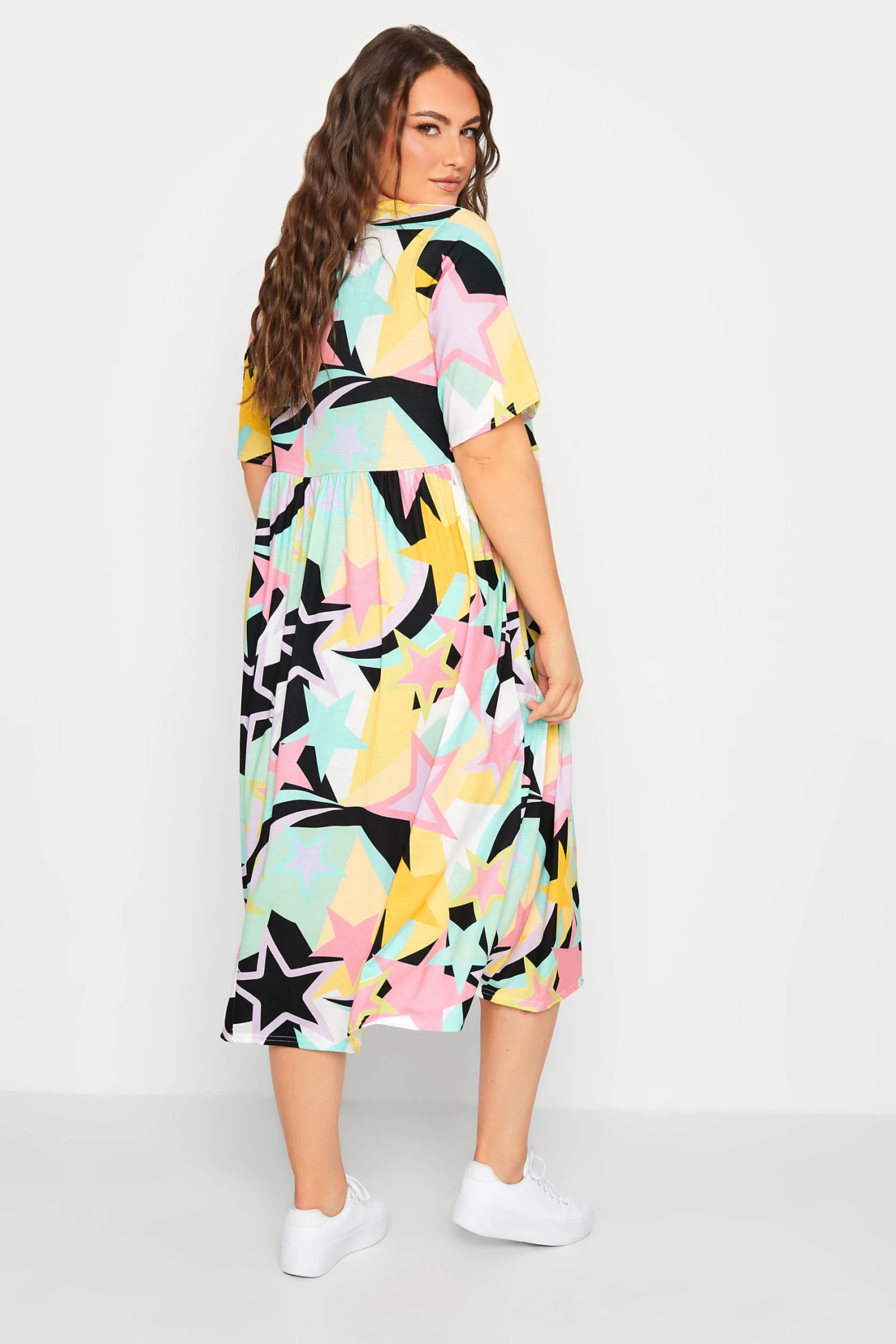 LIMITED COLLECTION Curve Black & Pink Star Print Midaxi Smock Dress - Image 3