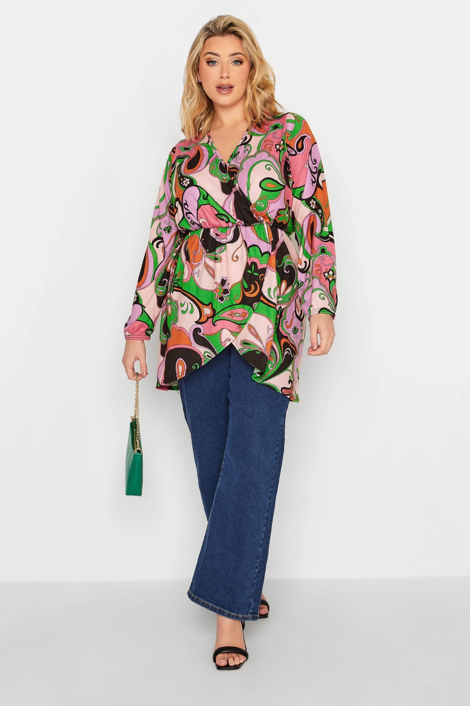 Add new prints to your wardrobe with this wrap top from Limited Collection. Made from a stretch jersey fabric, it features long sleeves with elasticated cuffs, a v-neckline and an elasticated waistband, complete with an extreme dipped hem. Style with jeans and boots for your next date night.