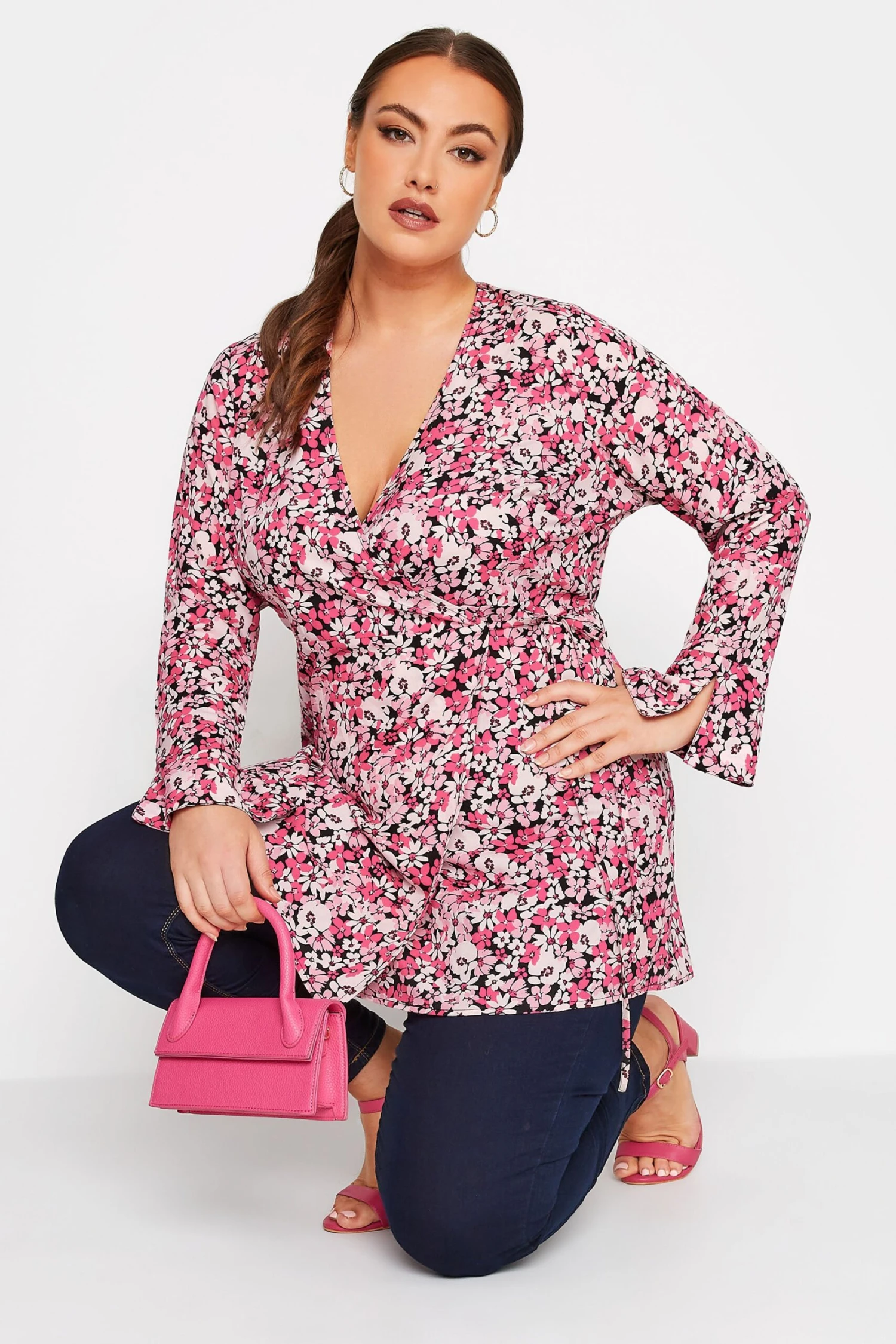 This plus size wrap top from Limited Collection is set to be your go-to this season. Made from a soft woven fabric, it features a floral print with long flute sleeves and a side tie fastening. Team with jeans and heels for a look that will take your from desk-to-dinner in style.