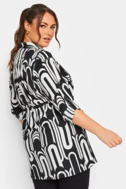 YOURS Curve Black & White Geometric Print Utility Tunic Shirt
