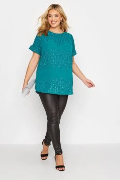 LUXE Curve Teal Blue Sequin Hand Embellished Top