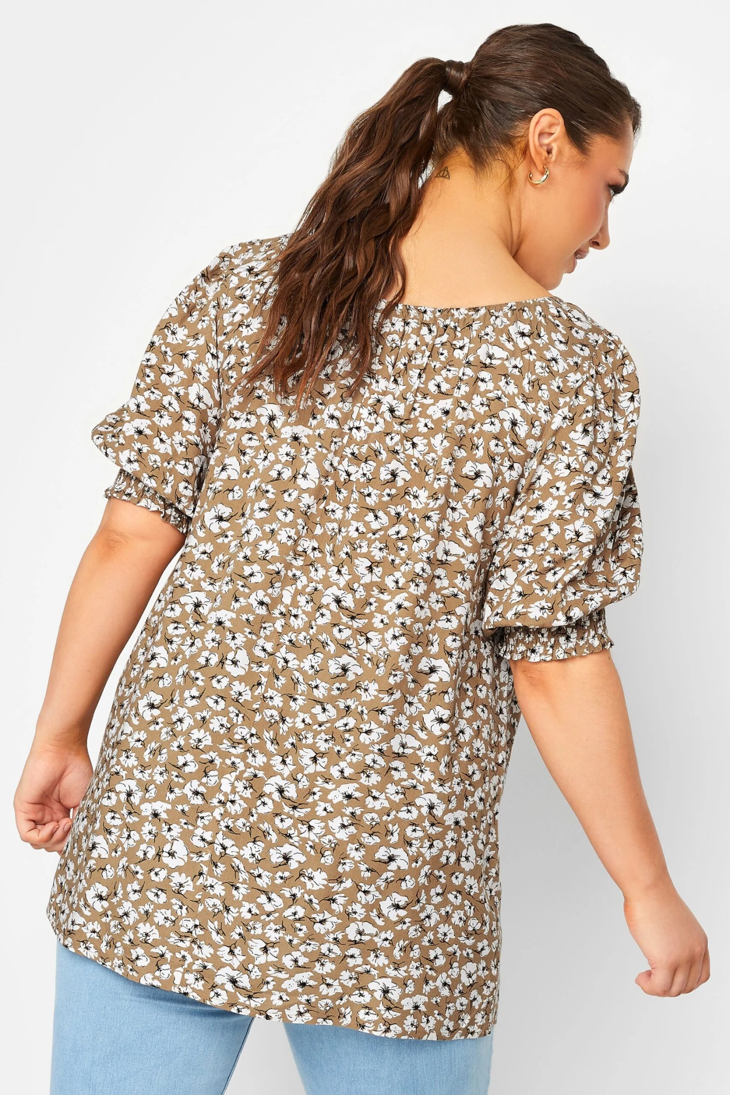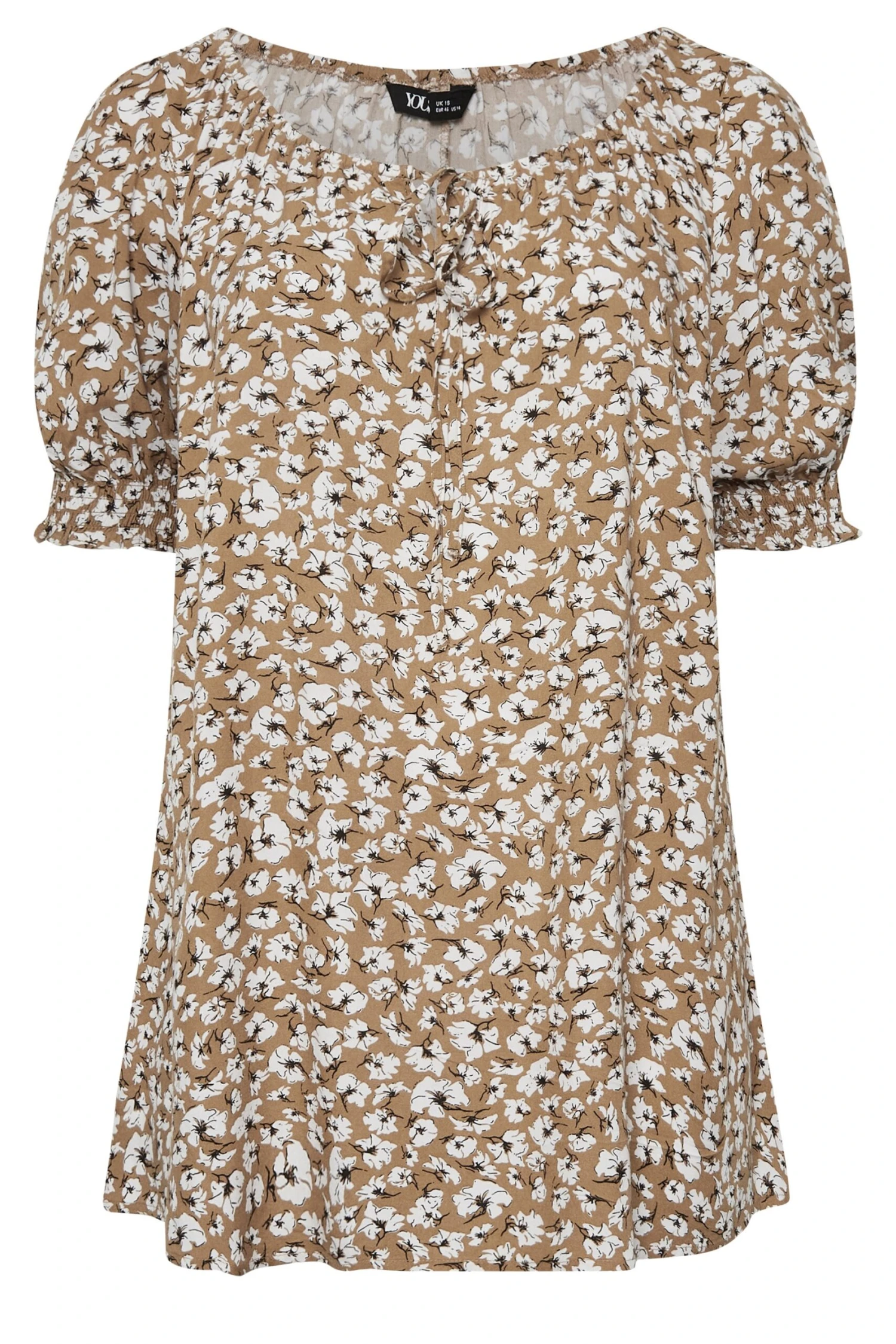 Enjoy the sun in this new-in gypsy top! Made from a comfortable woven fabric, it features a scoop neckline with tie detail and short, shirred cuff sleeves, complete in a floral print design. Pair with jeans and sandals for a stylish daytime look.