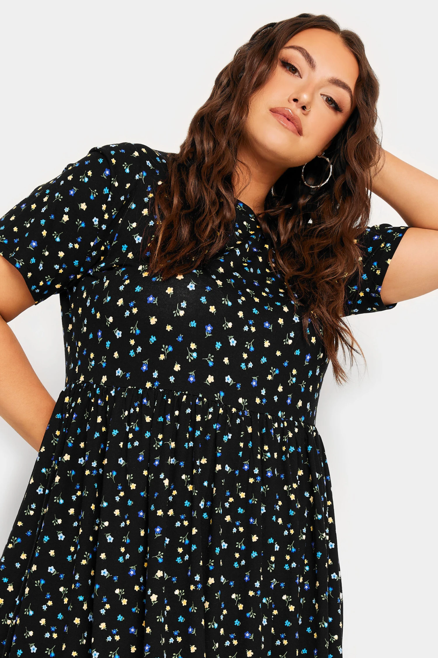 Enjoy the sun in style with this new-in midi dress. Made from a comfortable jersey fabric this dress features a floral design, short sleeves, a smock style, and a scoop neckline. Wear with trainers for a casual summer look.