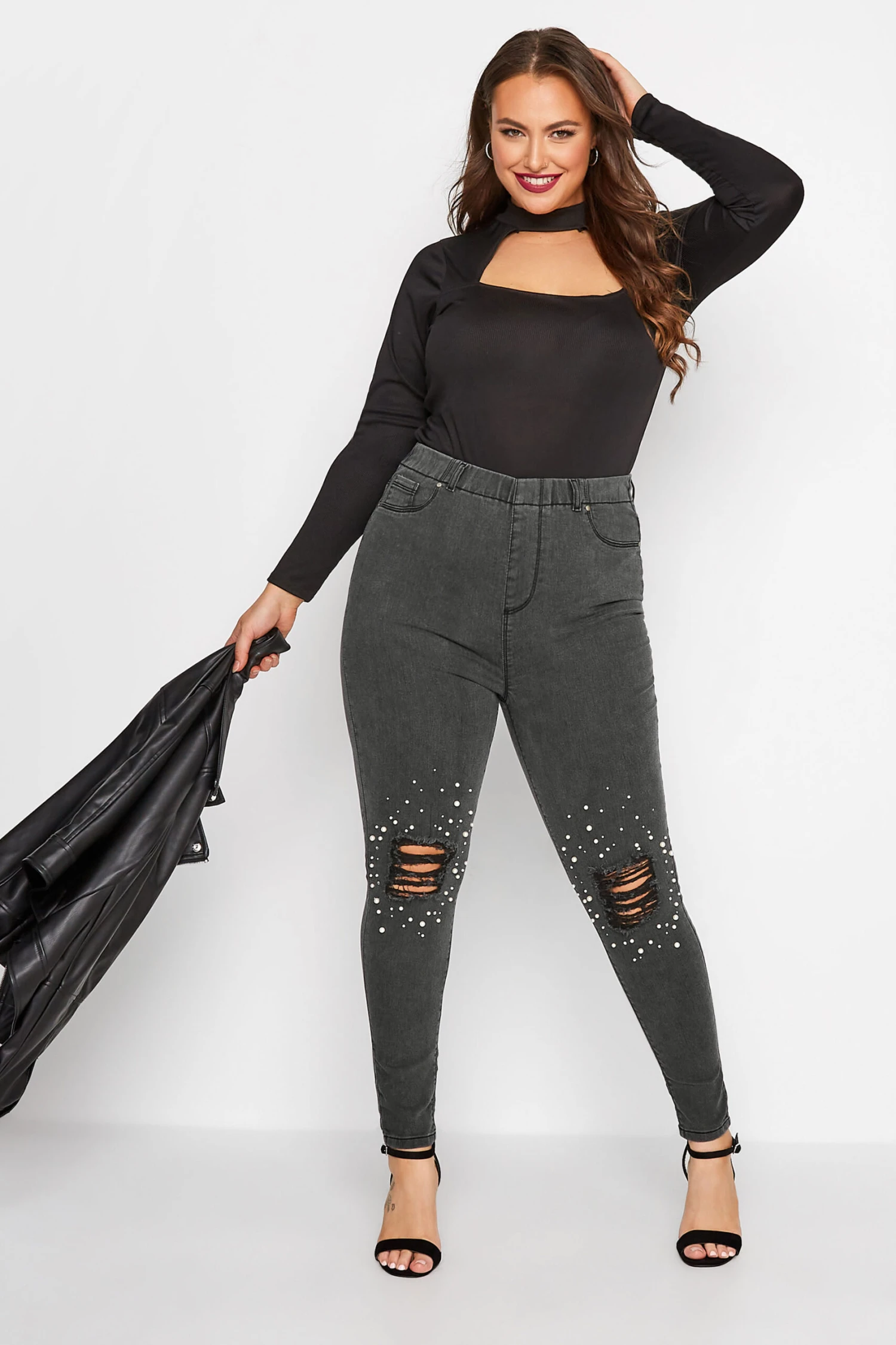 These YOURS Curve Black Embellished Knee Stretch GRACE Jeggings are the perfect addition to your wardrobe. Featuring an elasticated waist, ripped knee feature and skinny fit, these jeggings are made from a comfortable stretch fabric and are machine washable. With 73% cotton, 25% polyester and 2% elastane, these jeggings are sure to become a wardrobe staple.