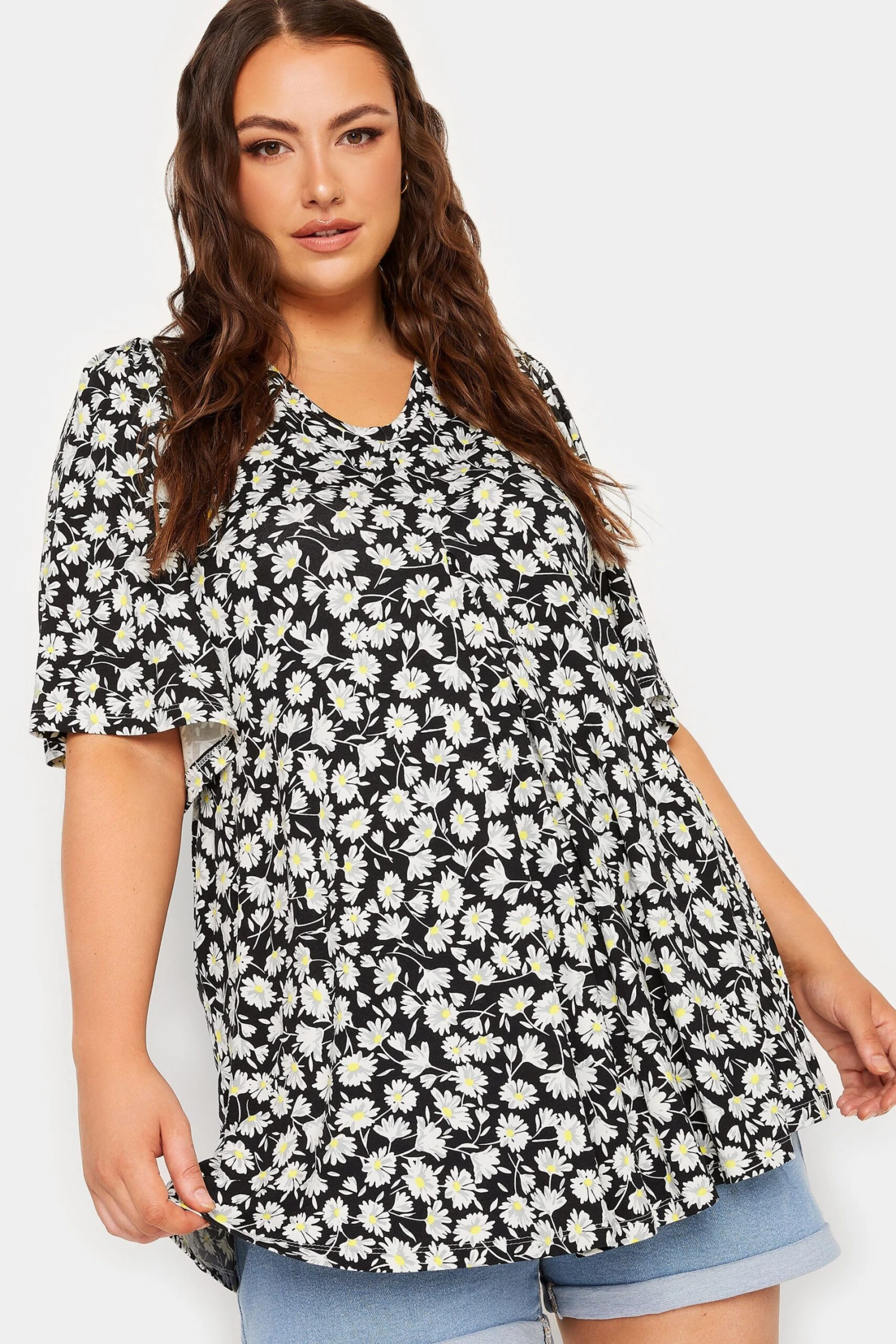 This angel sleeve top is a must-have for your wardrobe. Made from a comfortable jersey fabric, it features short angel sleeves, and a v-neckline with a pleated front and is complete in a swing style. Wear it with sandals and shorts for a cute summer look.