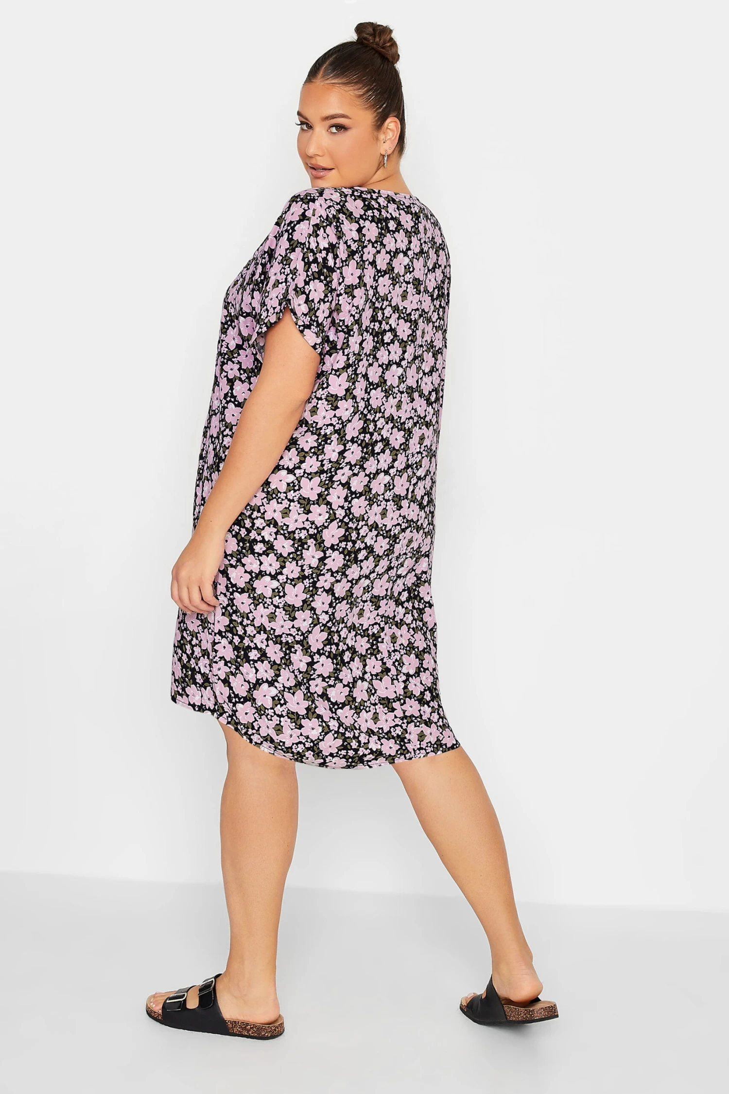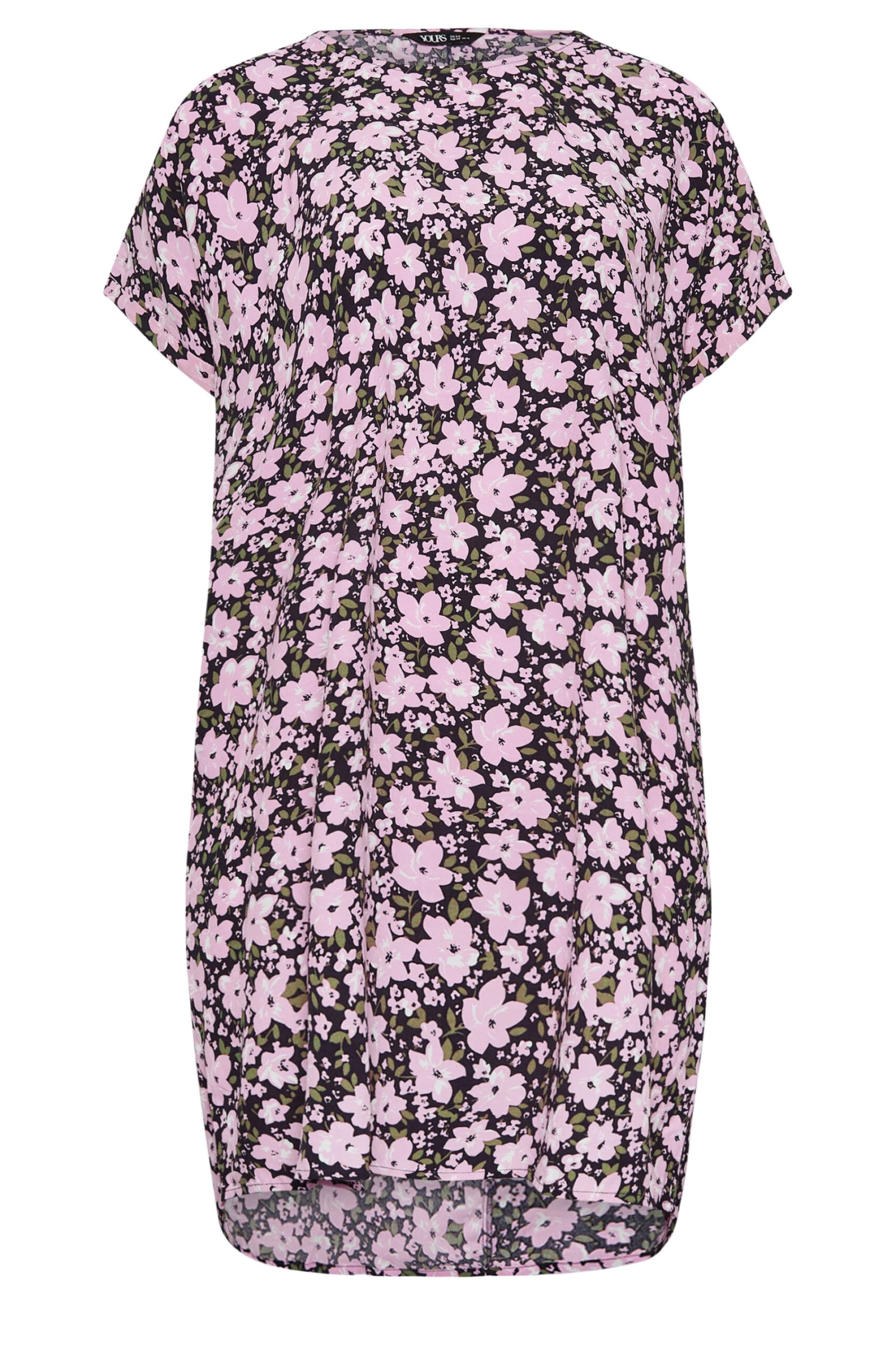 Refresh your style with this new-in plus size shift dress. Designed in a comfortable woven fabric, it features a scoop neckline with short sleeves and a dipped hem, complete in a floral print. Pair with sandals or heels to suit your plans.