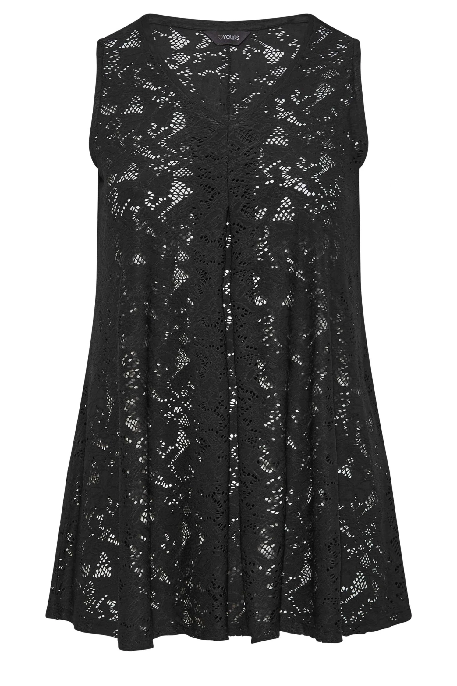 Amp up your wardrobe with this plus size lace vest top. Made from a comfortable jersey fabric, it features a v-neckline with a front pleat detail in a sleeveless design and swing style. Pair with your go-to jeans and sandals for an off-duty summer outfit.