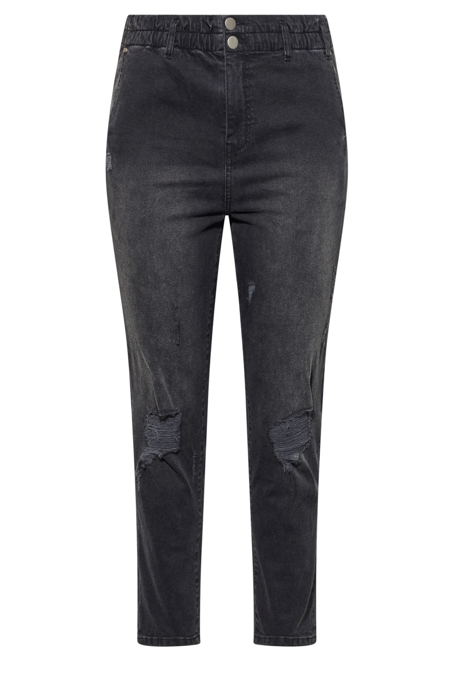 Stay on-trend this season with these new-in mom jeans. Made from a comfortable cotton blend fabric, they feature four functional pockets, ripped detail and an elasticated waistband for the perfect fit. Team with a graphic t-shirt and trainers for an effortless weekend look.