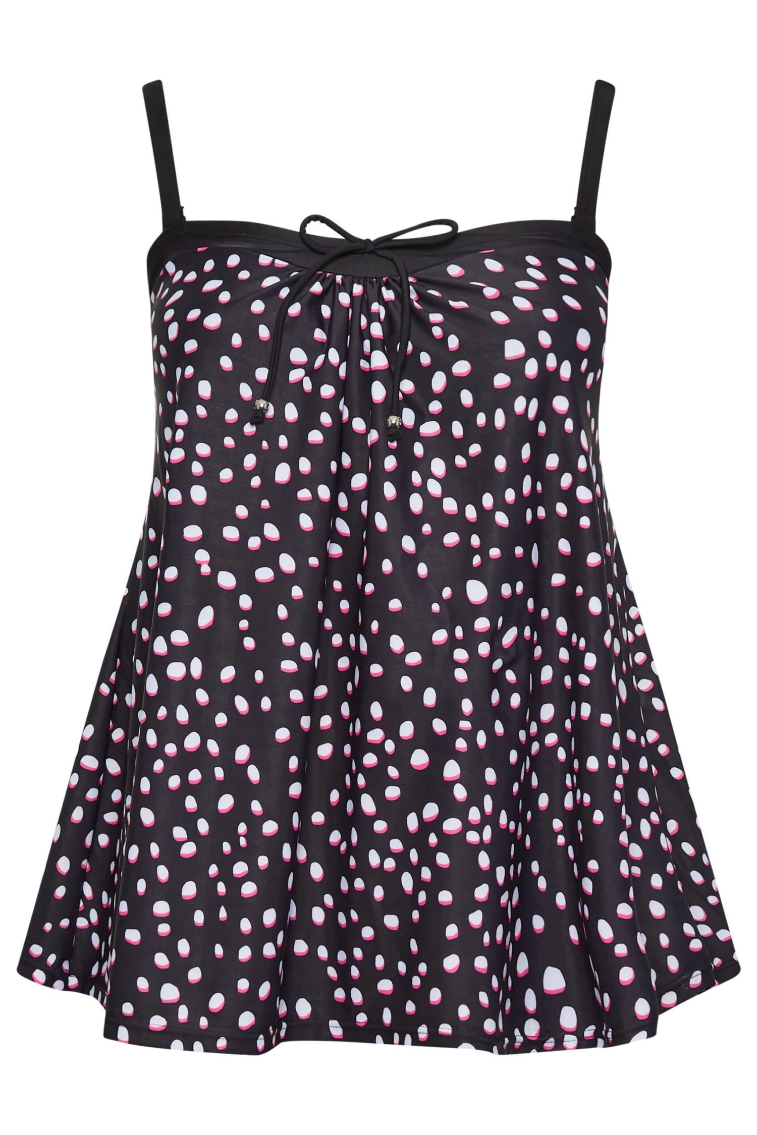 Add some pretty prints to your swimwear collection! Made from a stretch fabric this tankini features a spot print, a bow detail, strap sleeves, UPF25 sun protection, chlorine resistance, and quick-drying fabric. Style with sandals and a beach cover-up for a look you can wear with confidence.