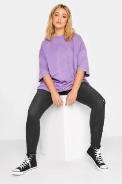 Freshen up your denim for the new season. These plus size wide leg jeans feature a flattering high-waisted style with five functional pockets and belt loops, finished with frayed hems in a stretch fabric. Compliment with a denim jacket and trainers for fashionable everyday wear.