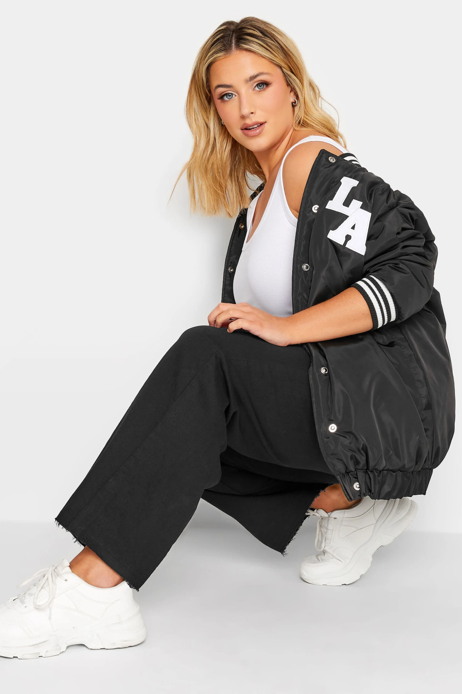- Model is 5’8″/175 cm and size UK 16/EU 44