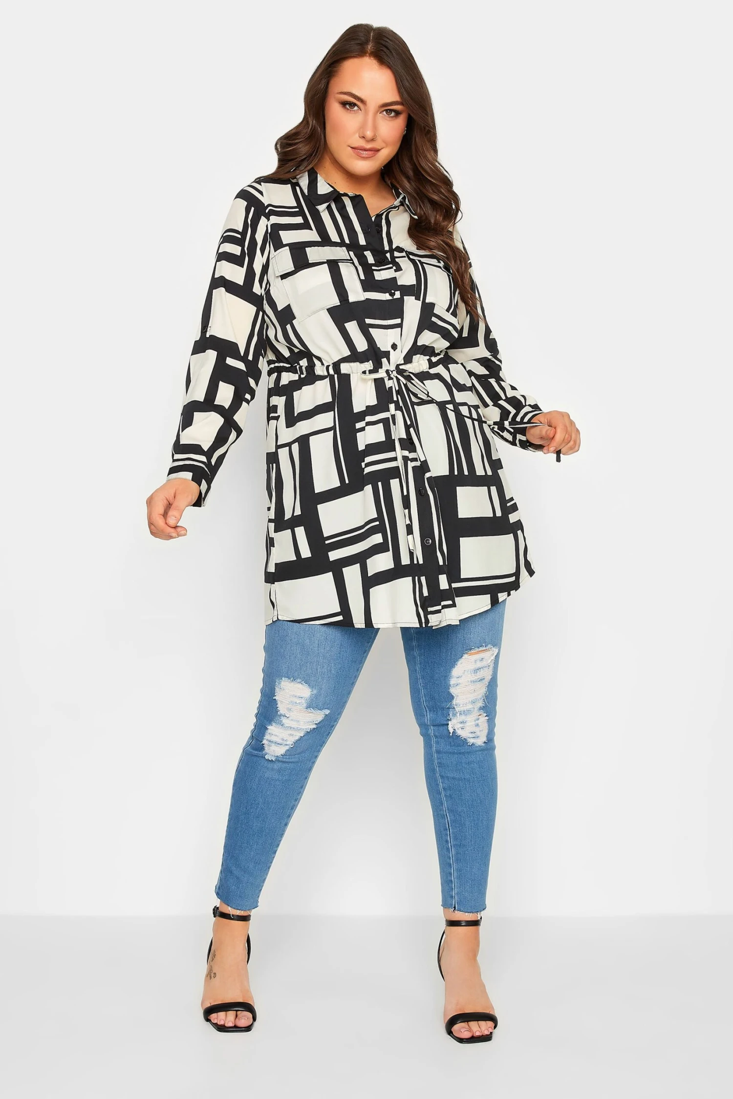 You’ll want to wear this must-have blouse on repeat this season. Made from a comfortable woven fabric, it features a geometric print with an adjustable drawstring waist and two utility pockets. Simply team with jeans and boots for a look that will take you from desk-to-dinner in style.