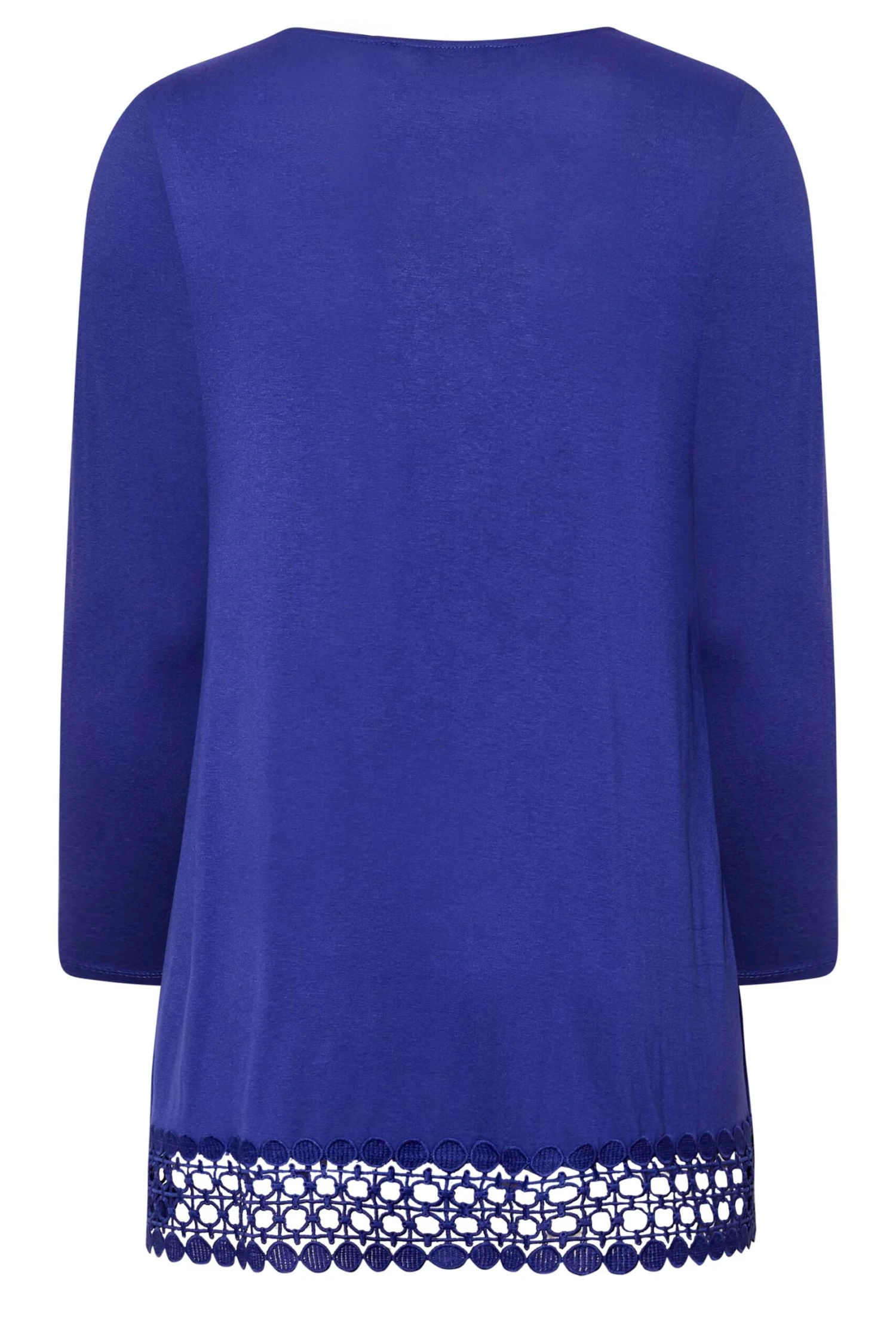 YOURS Curve Blue Crochet Trim Long Sleeve Tunic Top -Saga Dresses Shop c82429b8 66e2 4e 320340 X