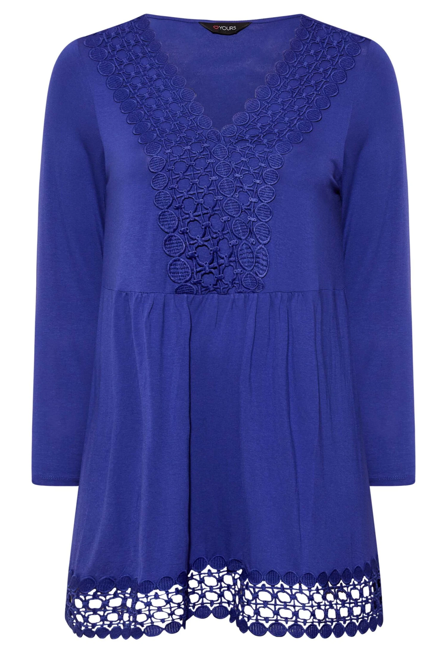 YOURS Curve Blue Crochet Trim Long Sleeve Tunic Top -Saga Dresses Shop 326f4487 a266 48 320340 Y