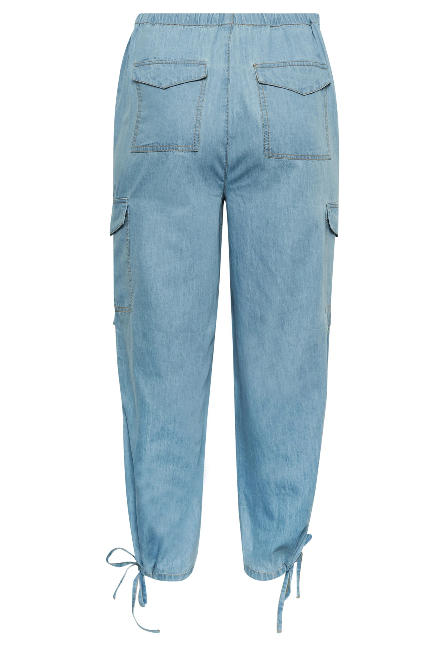 Stay on trend this season with the new in cargo jeans. Made from a comfortable woven fabric these cargo jeans feature an elasticated waistband, a drawstring, pockets and a cuffed bottom. Wear with trainers and a crop top for a look you can wear on repeat.