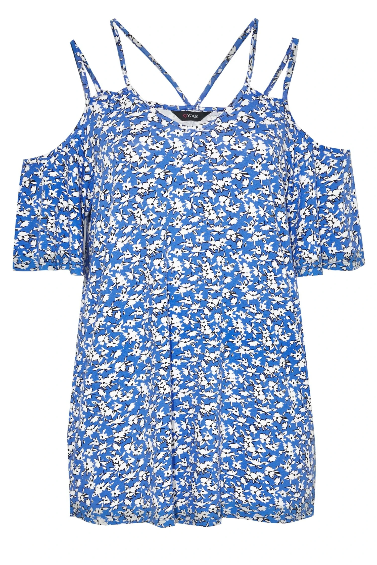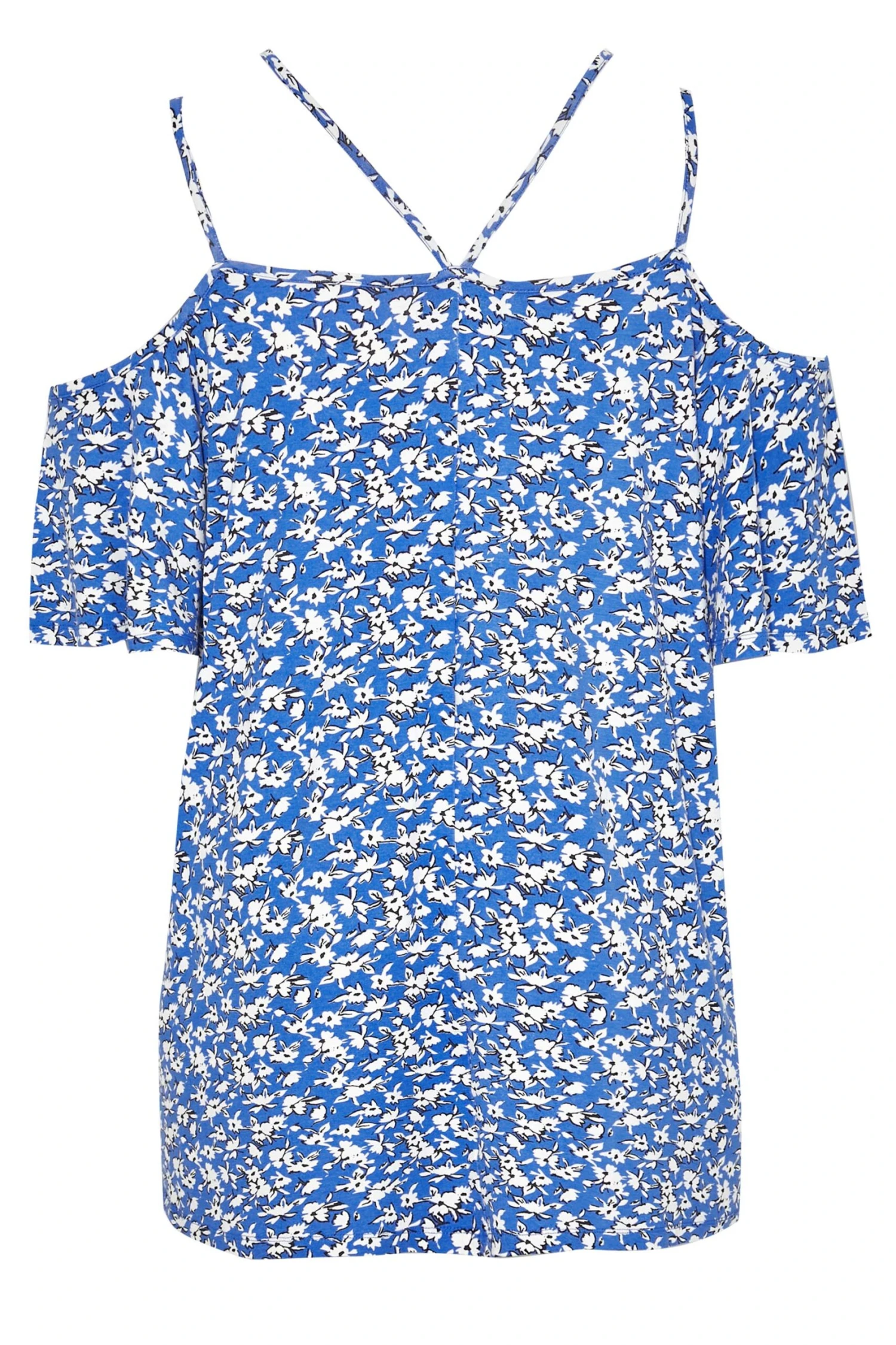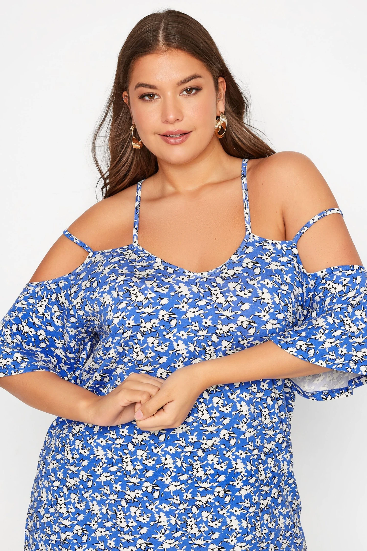 Get ready for summer with this plus size cold shoulder top. Made from a comfortable jersey fabric, it features short flared sleeves, a v-neckline and an all-over floral print. Pair with jeans and sandals for a casual yet stylish outfit.