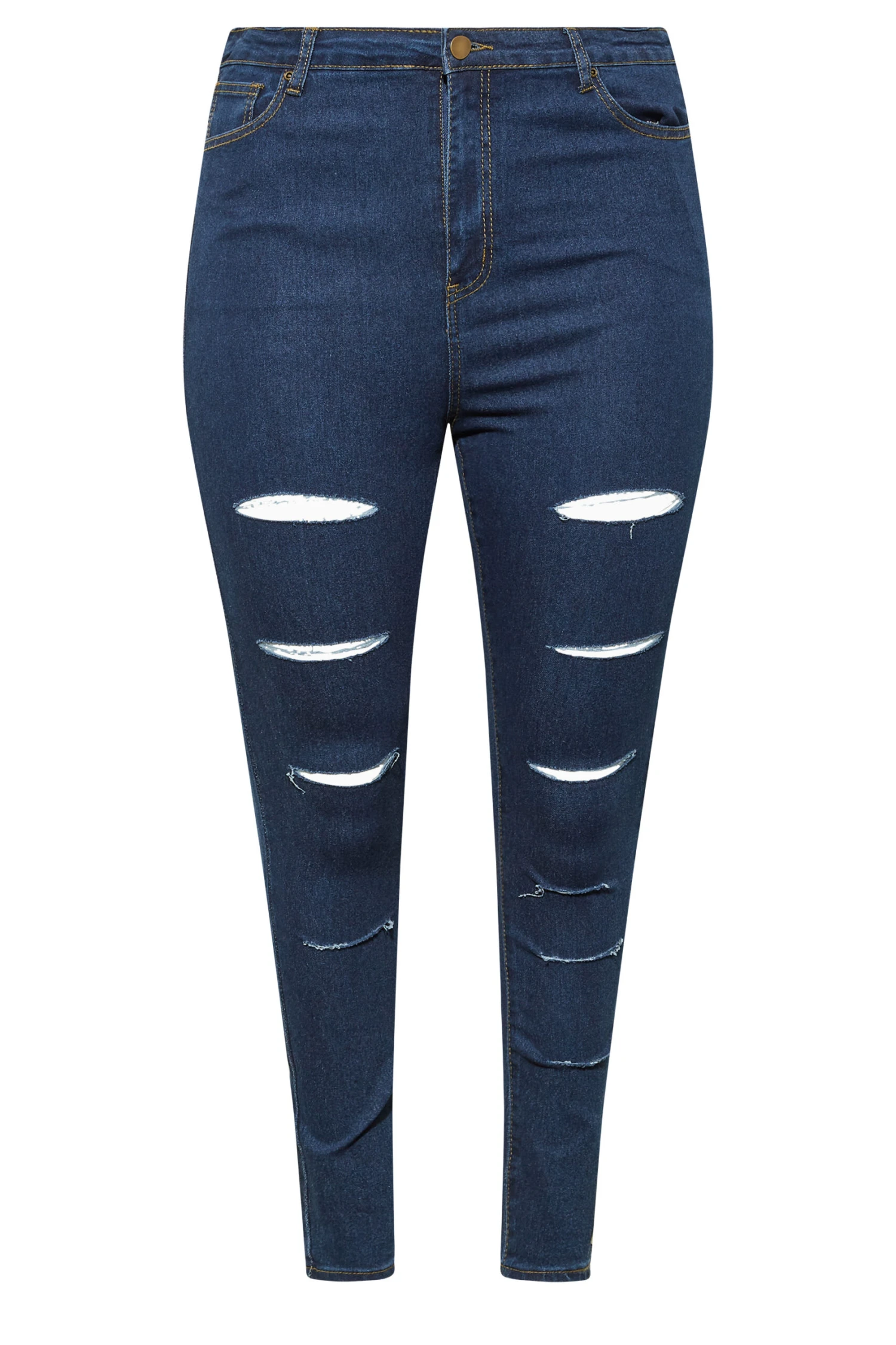 Upgrade your everyday jeans with these new-in AVA jeans from Yours Curve. Our AVA jeans feature ripped details on the thighs, have five pockets and are finished with belt loops making them stylish and functional. Style with a nice top and heels for a weekend look or with trainers and a t-shirt for an everyday look.