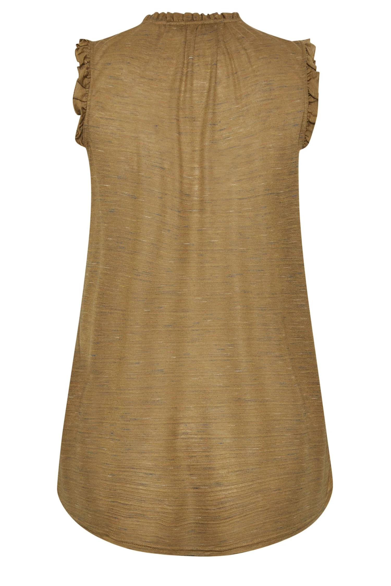 Start the new year in style with this plus-size frill blouse. Made from a comfortable jersey fabric, it features an adjustable neck tie in a v-neckline with frill sleeve detail, complete in a marl finish. Style with jeans and trainers for a casual, off-duty outfit.