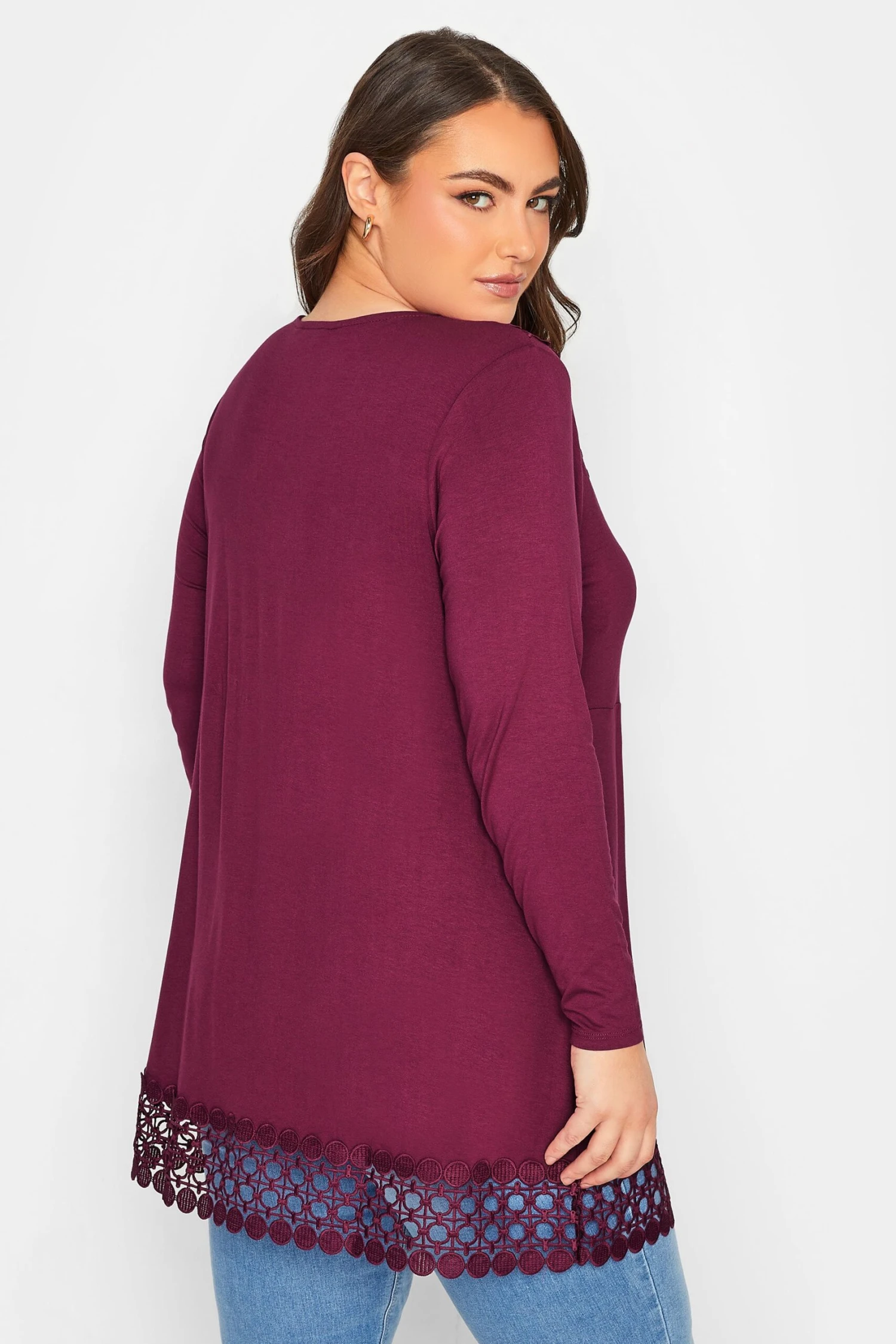 Refresh your wardrobe with this new-in tunic. Made from a comfortable jersey fabric, it features long sleeves, a v-neckline and is finished with crochet detailing. Partner with jeans and heels for the perfect weekend look.
