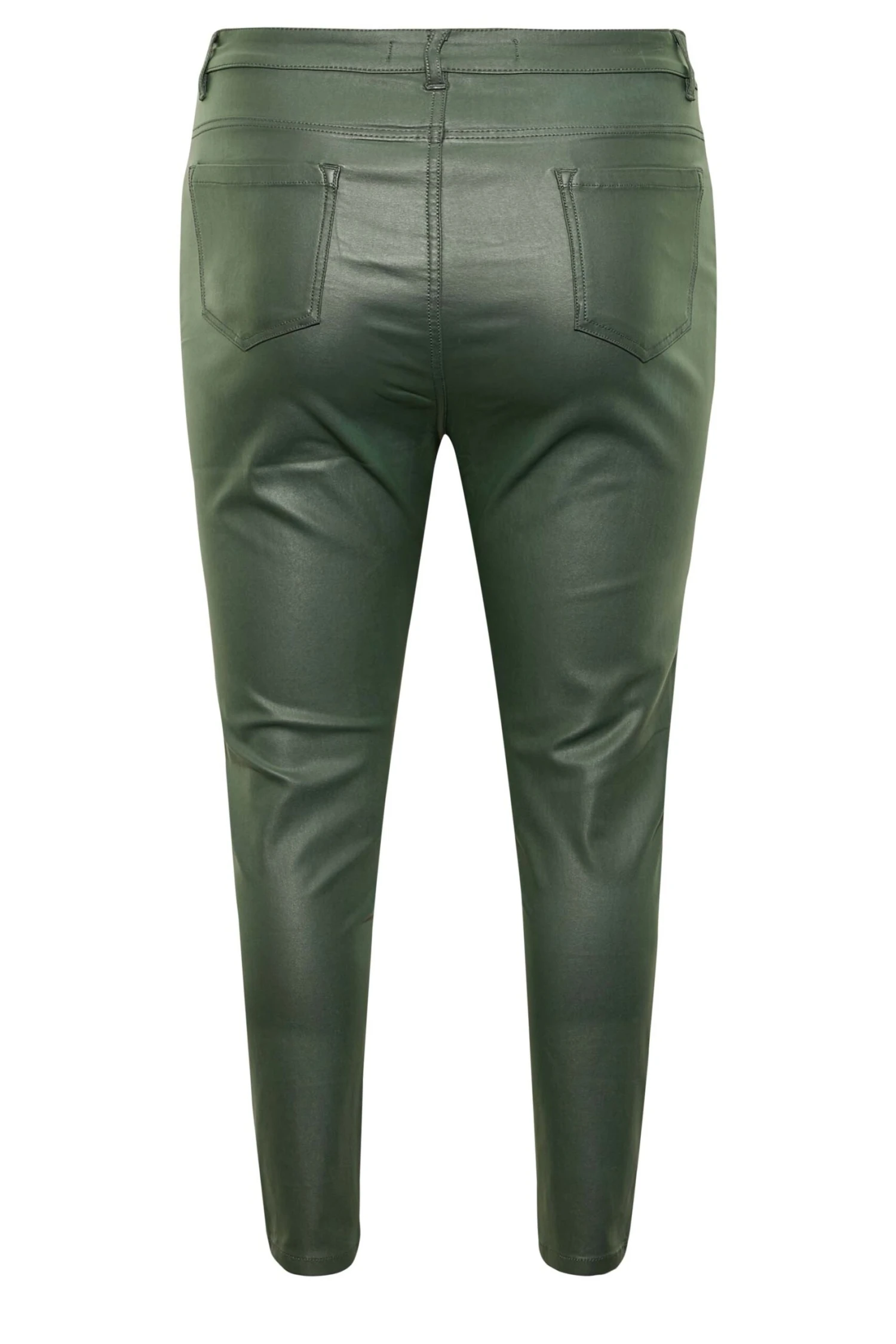 These YOURS Curve Green Coated Skinny Stretch AVA Jeans are the perfect addition to your wardrobe. Featuring a button and zip fastening, belt loops, two back pockets, and a skinny fit, these jeans are made from a stretch fabric for ultimate comfort. With a coated finish, these jeans are made from 74% nylon, 22% rayon, and 4% elastane and are machine washable.