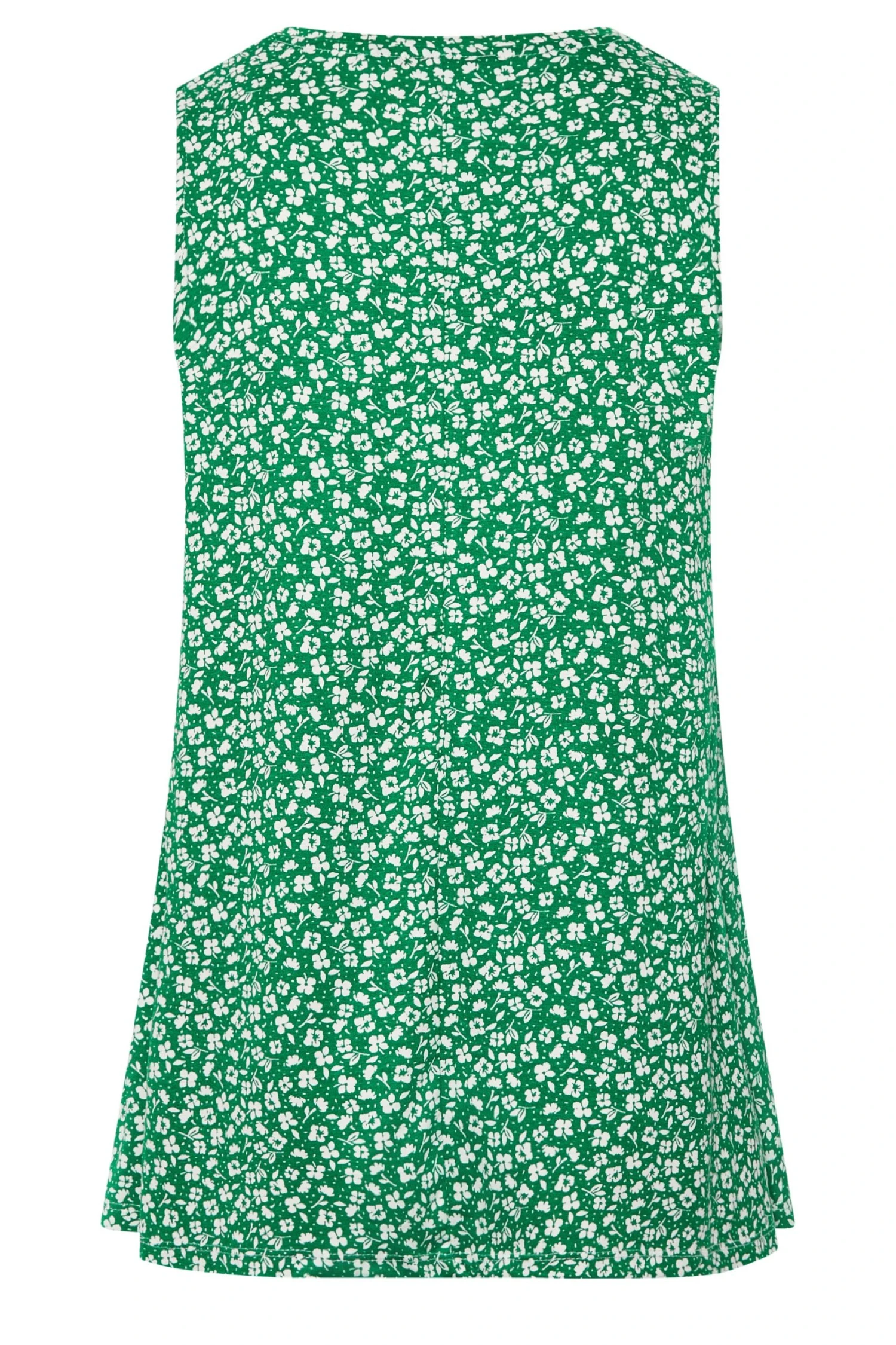 YOURS Curve Green Floral Print Pleat Front Vest Top - Image 5
