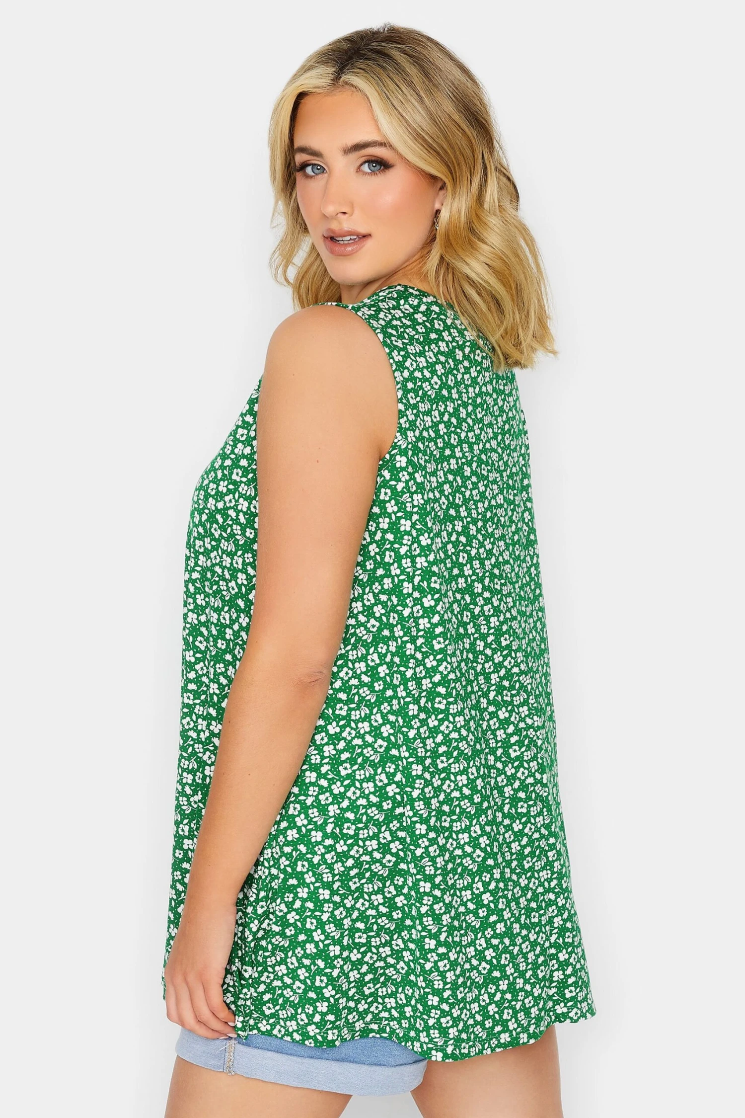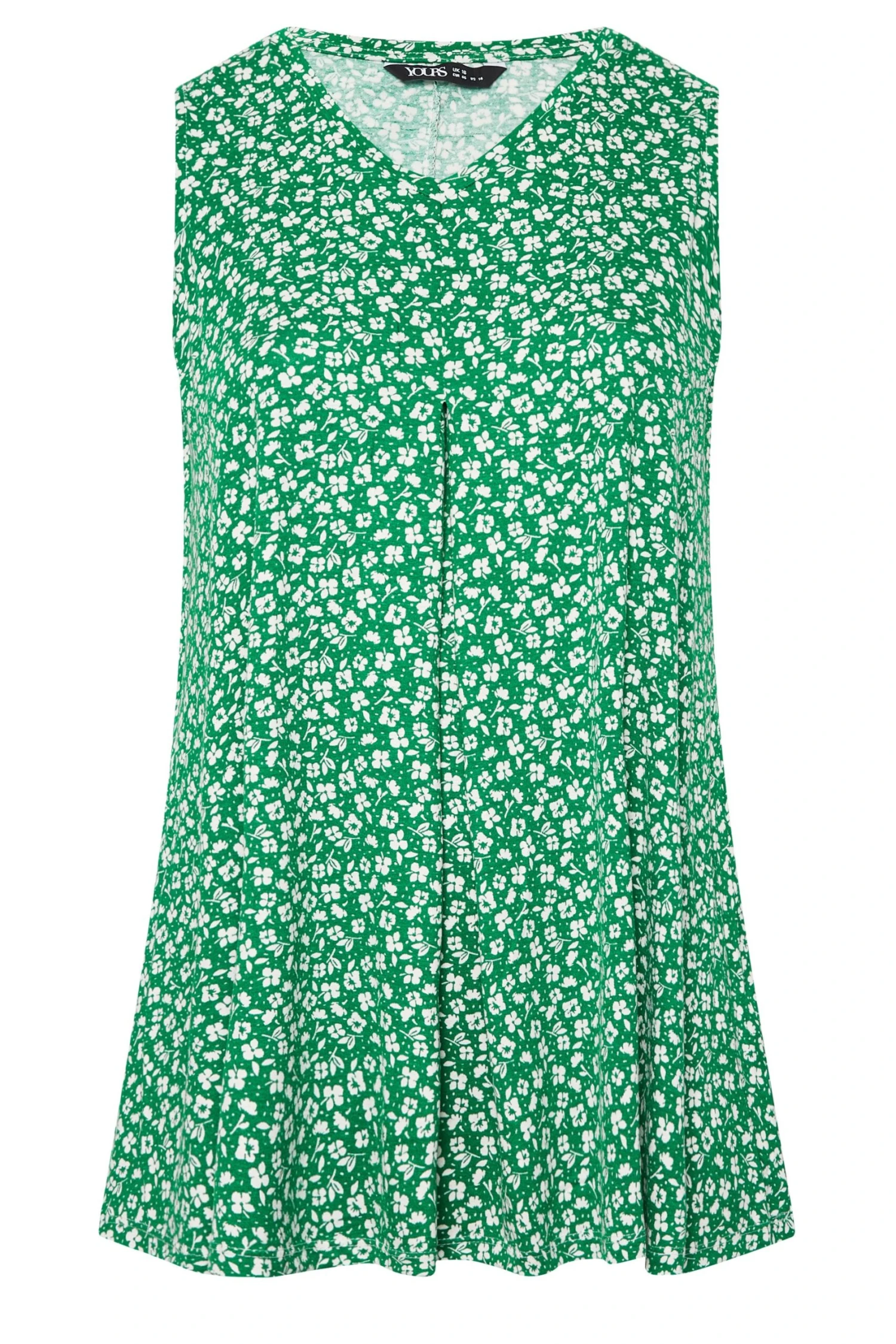 YOURS Curve Green Floral Print Pleat Front Vest Top