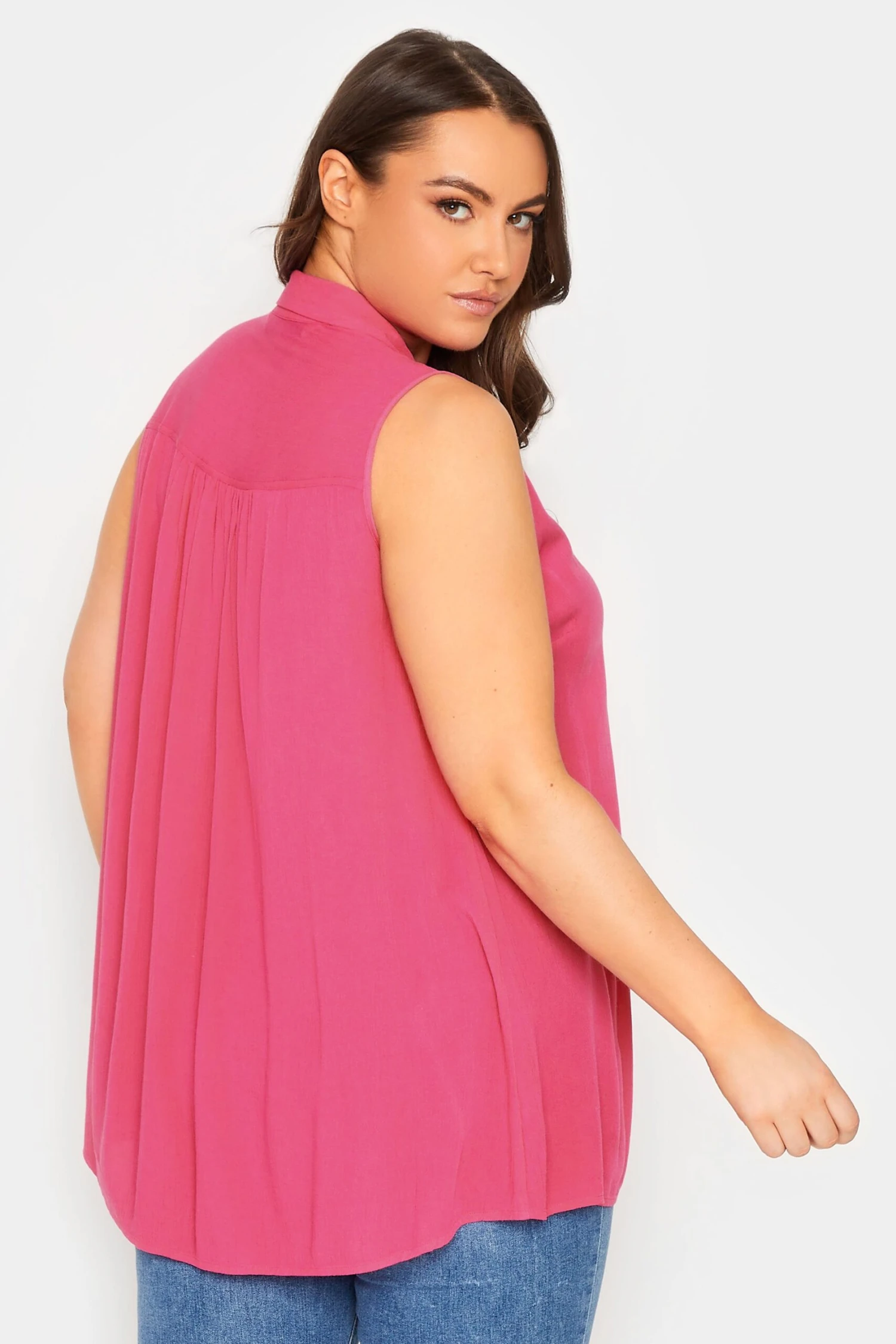 A staple for every day – whether you are in the office or off duty. Made from a comfortable woven fabric, this new-in blouse features a classic collar, button-through fastenings, and is in a sleeveless design with a dipped hem. Simply style with jeans and sandals or heels to fit your plans.