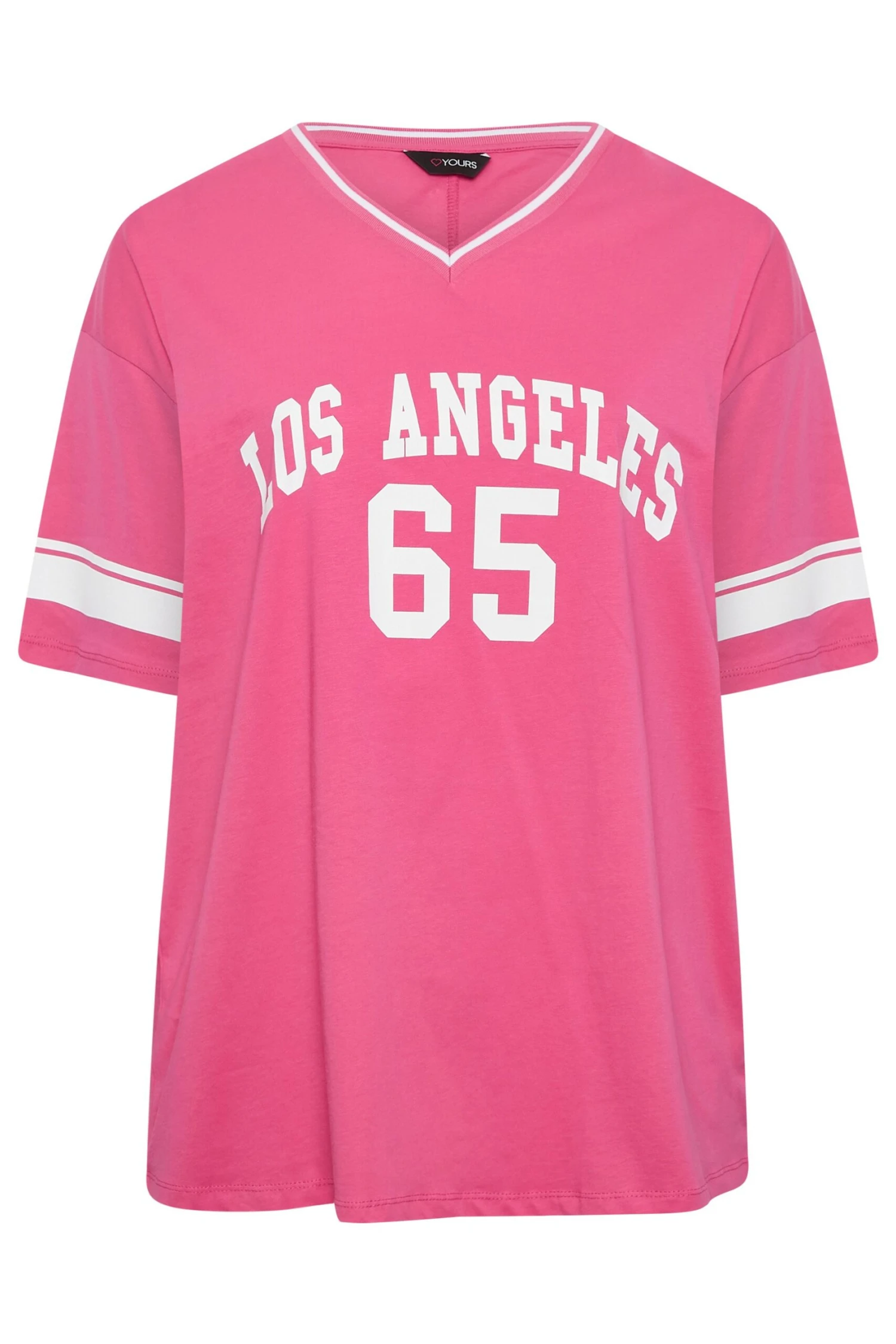 This new-in plus size varsity top will be your new favourite daytime staple. Made from comfortable cotton fabric, this top features short sleeves, a ‘Los Angeles’ slogan, and a v-neckline. Style with shorts and trainers for a comfortable everyday look.
