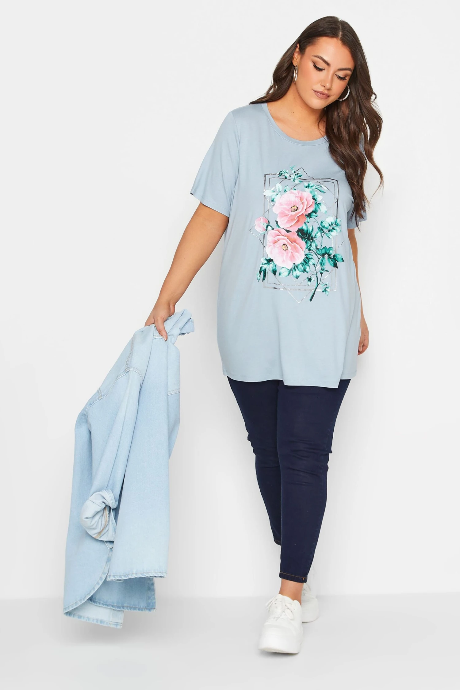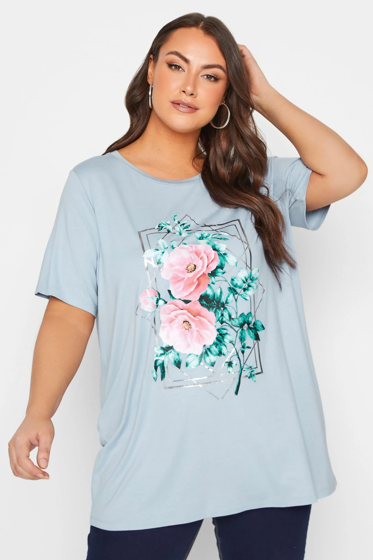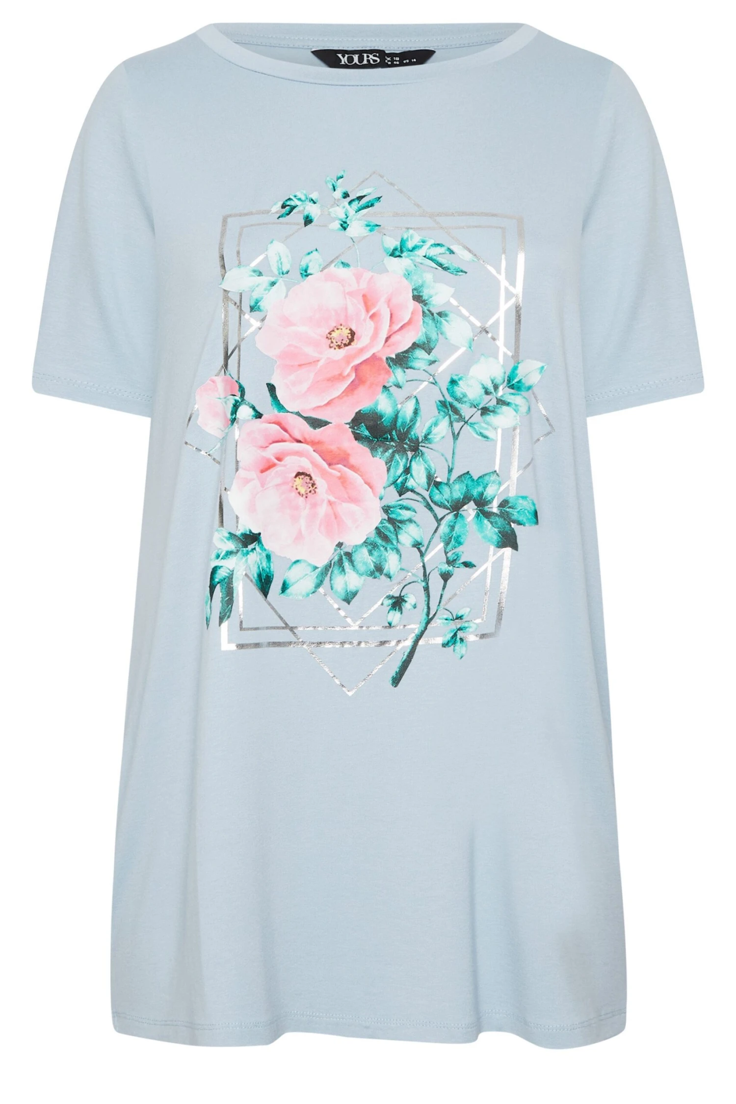 Amp up your prints collection with this new-in plus size t-shirt. Made from a comfortable jersey fabric, this tee features short sleeves, a floral design, a foil detail and a scoop neckline. Style with jeans and trainers for a casual everyday look.