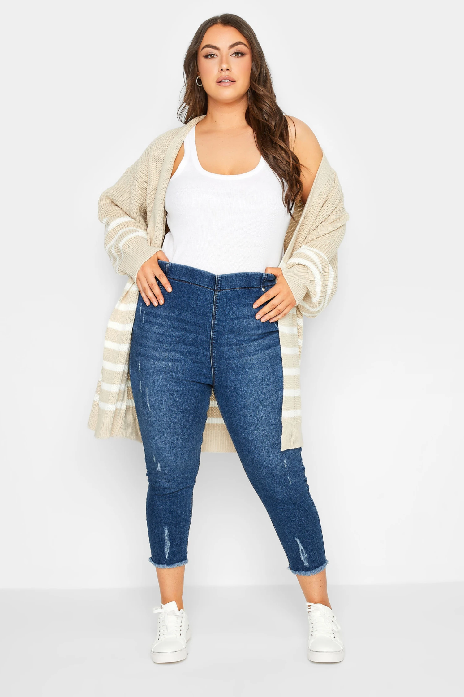 Upgrade your everyday denim with these new-in cropped jeggings. Made from a stretch denim fabric, they feature distressed cat scratch detail with an elasticated waistband and two functional pockets. Team with your go-to t-shirt and trainers for an effortless off-duty look that you can rely on.