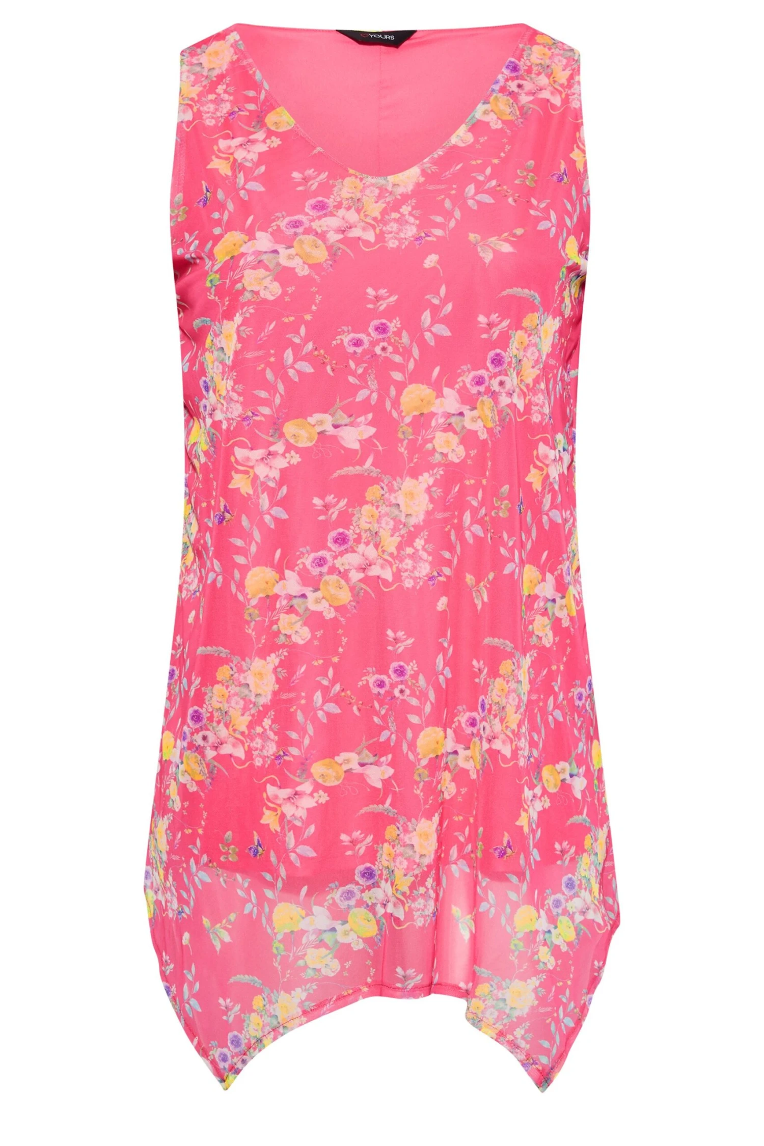 No wardrobe is complete without this plus size floral vest top. Made from a comfortable jersey fabric, it features a v-neckline in a sleeveless design with a hanky hemline and is doubled layered. Pair with jeans and heels for your next night out.