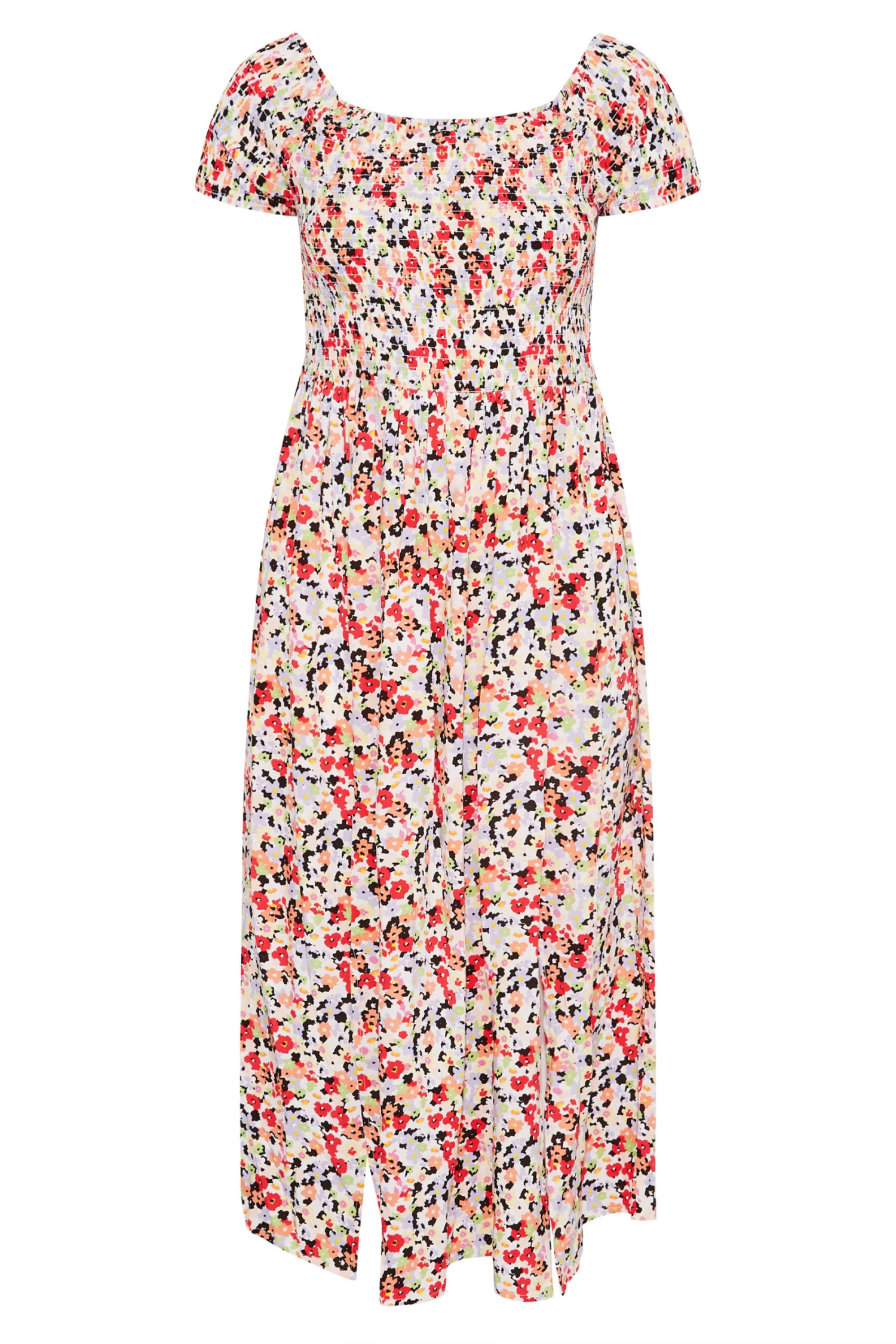 This plus size floral maxi dress was made for your summer plans. Made from a soft woven fabric, it features short sleeves with a shirred upper fabric and bardot neckline. Team with mules and a shoulder bag for an effortless weekend look.