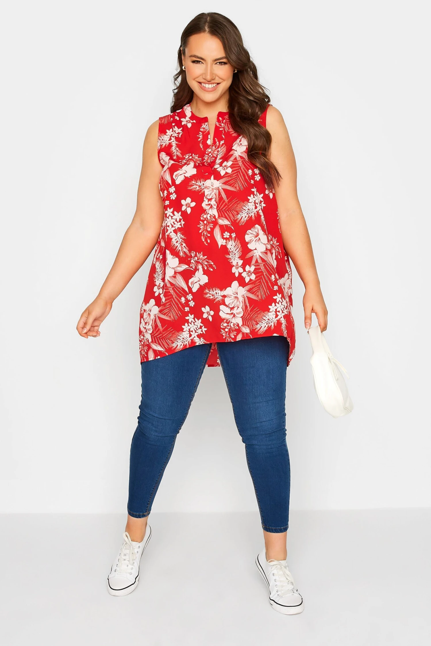 Play with prints this summer with our new-in plus size blouse. Comfortable in a woven fabric, it’s detailed with a notch neck and a sleeveless design. Style with jeans and heels and complete the look with a shoulder bag.