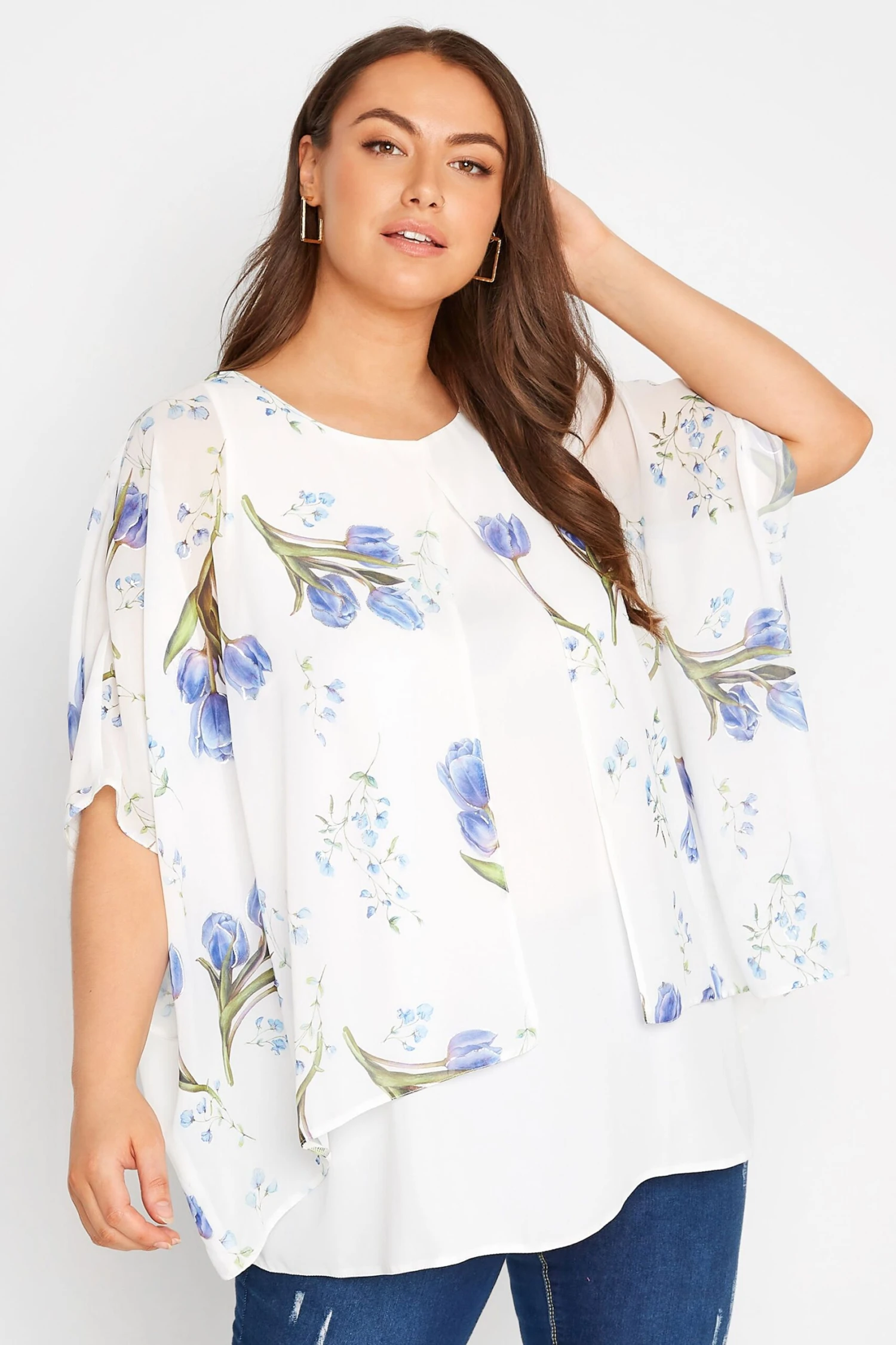 Need an outfit for the weekend? This floral blouse is your answer. Made from a soft woven fabric, it features 3/4 length sleeves, a scoop neckline and is complete in a double layer design. The perfect jeans and a nice top combo.
