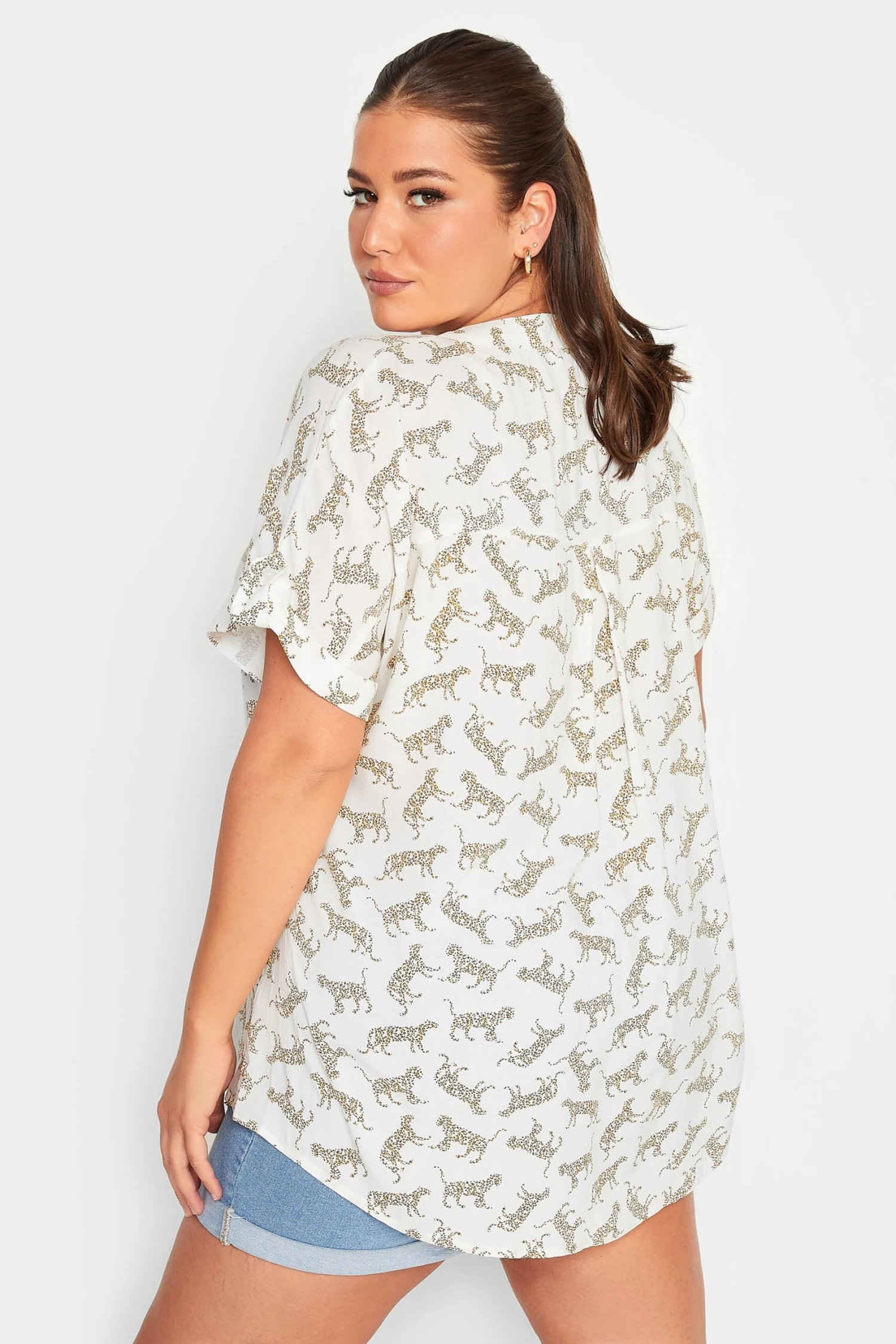 Refresh your casual collection with this new plus-size blouse. Made from comfortable woven fabric this shirt features short sleeves, a leopard print and a button-down look. Style with shorts and trainers for a look you can wear on repeat this season!