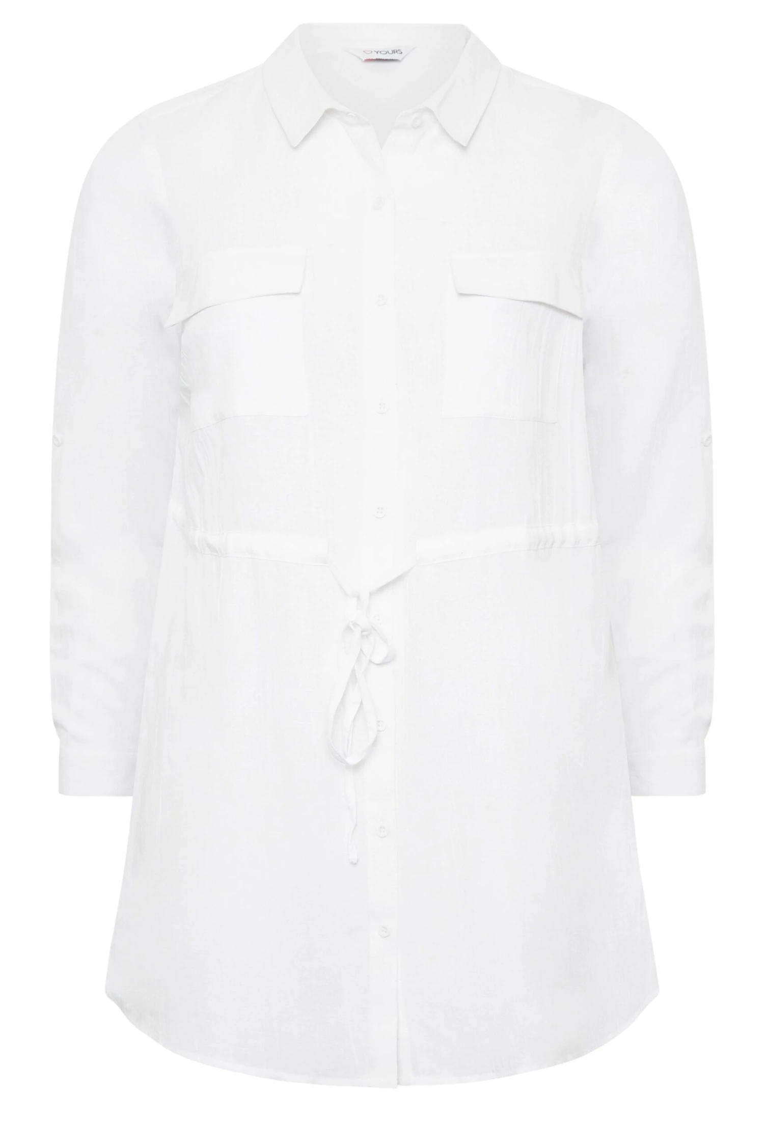 A must-have essential for your wardrobe! Made from a soft linen look fabric, this shirt features 3/4 length sleeves, a tie waist, chest pockets, and a classic collar. Style with leather leggings and black boots for a look you’ll feel confident in!