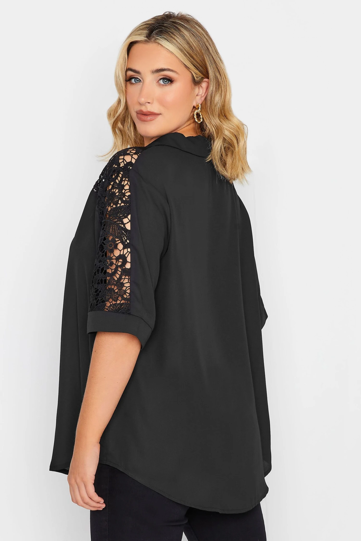 Elevate your wardrobe with this white lace insert shirt from Yours London. It features 3/4 length sleeves with a classic collar and button through fastenings. Pair with your favourite jeans and heels for a smart-casual outfit.
