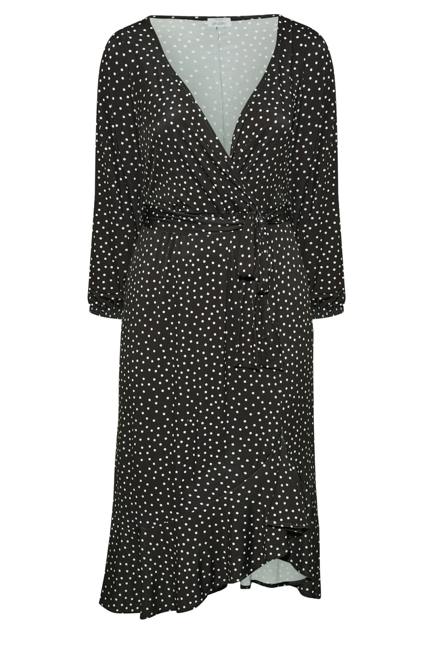 No wardrobe is complete without this Yours London plus size wedding guest dress. Made from a comfortable jersey fabric, it features long sleeves, a v-neckline in a wrap style with a ruffle hem and an adjustable tie waist, complete at a midi length. Pair with heels and clutch bag for an effortless outfit.