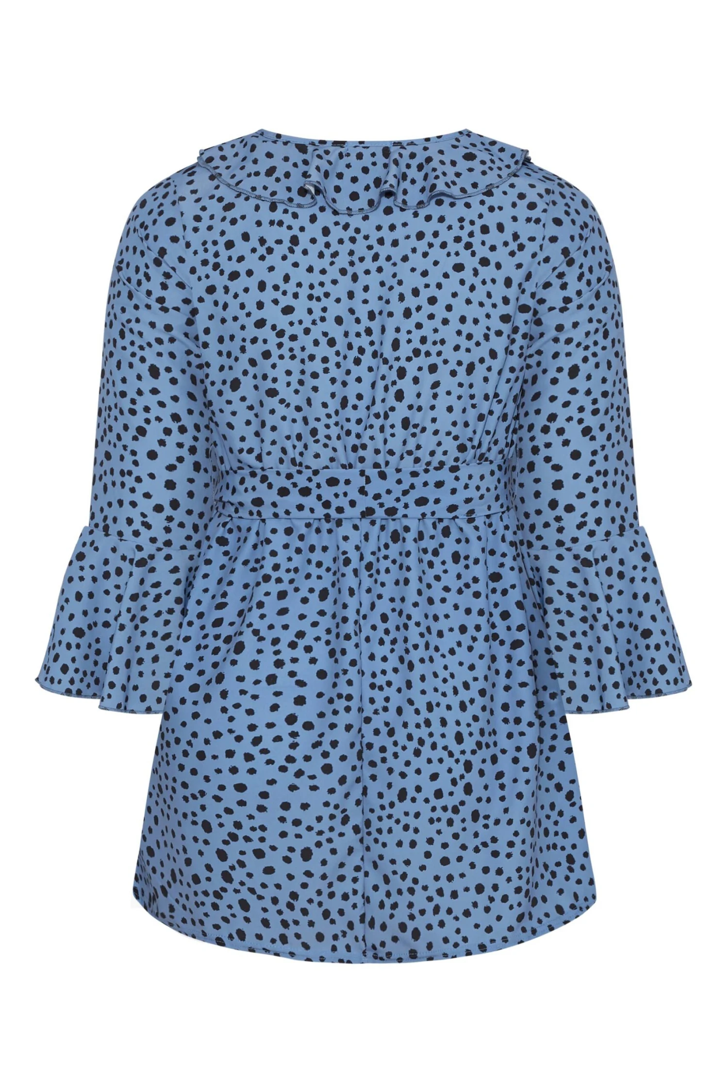 Update your wardrobe with this Yours London dalmatian print wrap top. Made from a soft woven fabric, it features a v-neckline, ruffle hem, belted tie waist and 3/4 length sleeves. Style with your favourite jeans and heels for a nine-to-wine outfit.