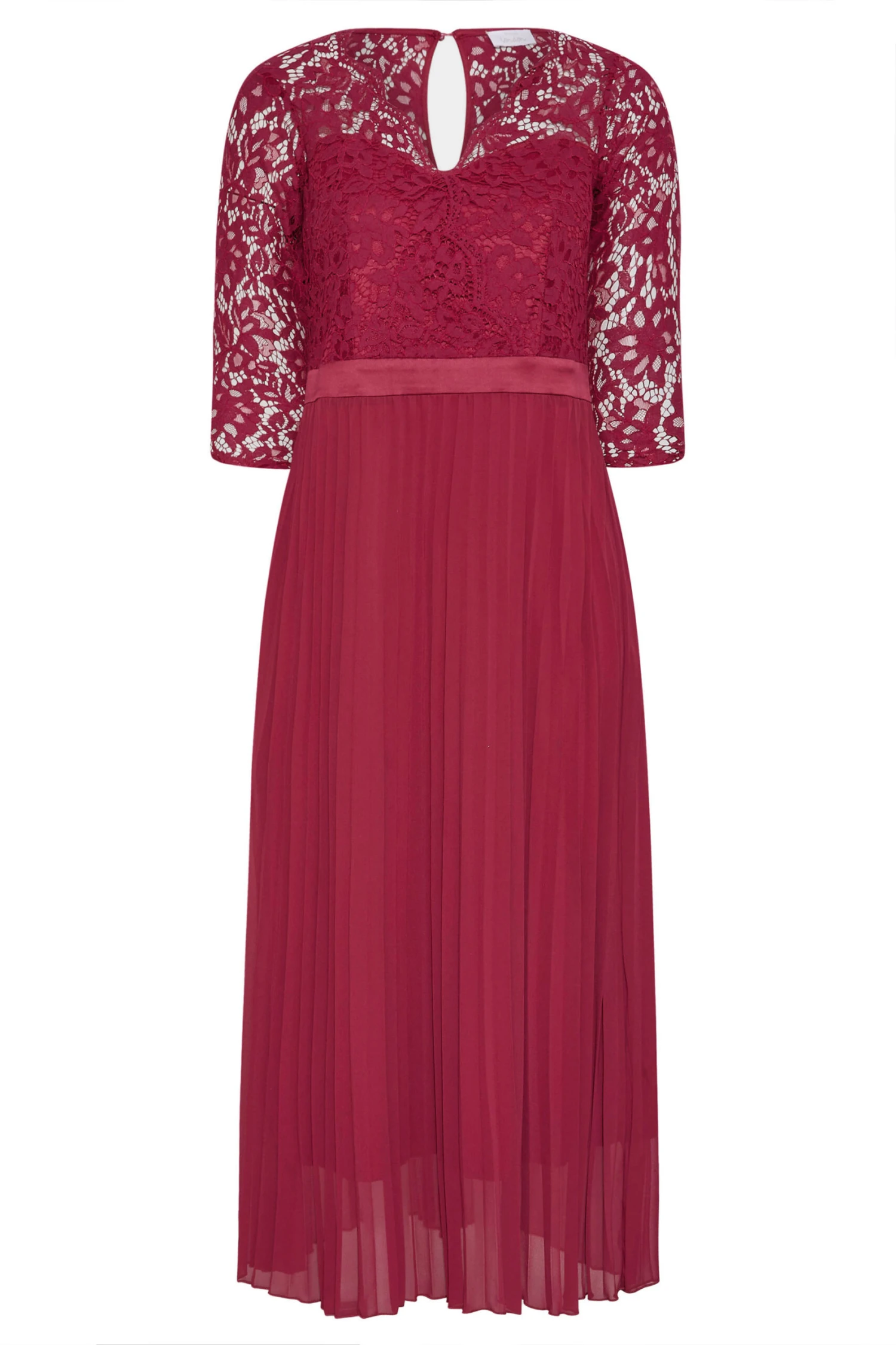 Meet your new occasion wear favourite with this plus size wedding guest dress exclusive to Yours London. This elegant lace dress can be worn by bridesmaids or attending guests, featuring a v-neckline with a lace upper bodice and pleated mesh skirt. Simply pair with heels to feel confident for your next special occasion.