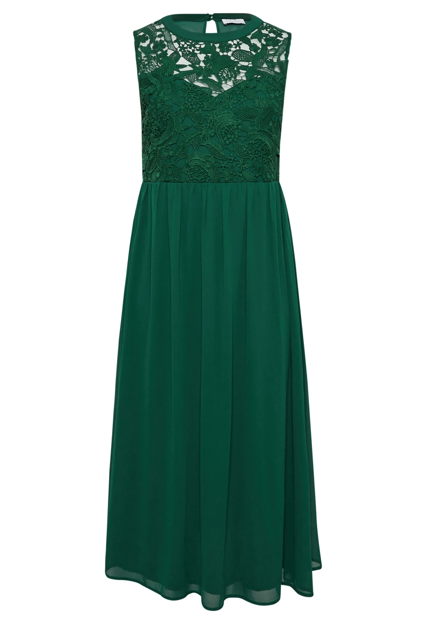 YOURS LONDON Curve Forest Green Lace Front Chiffon Maxi Dress
