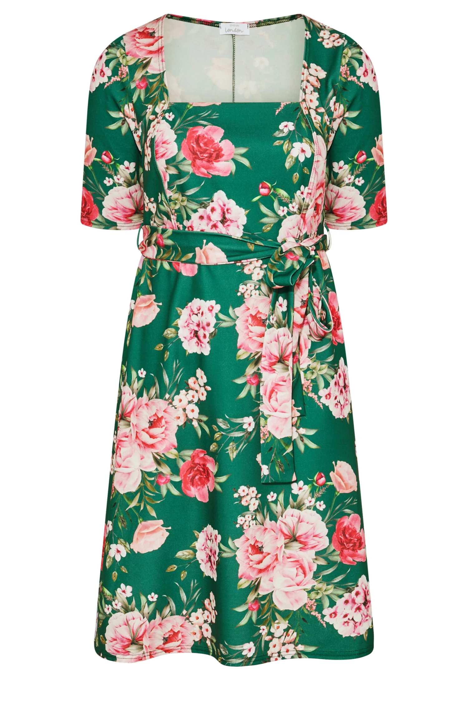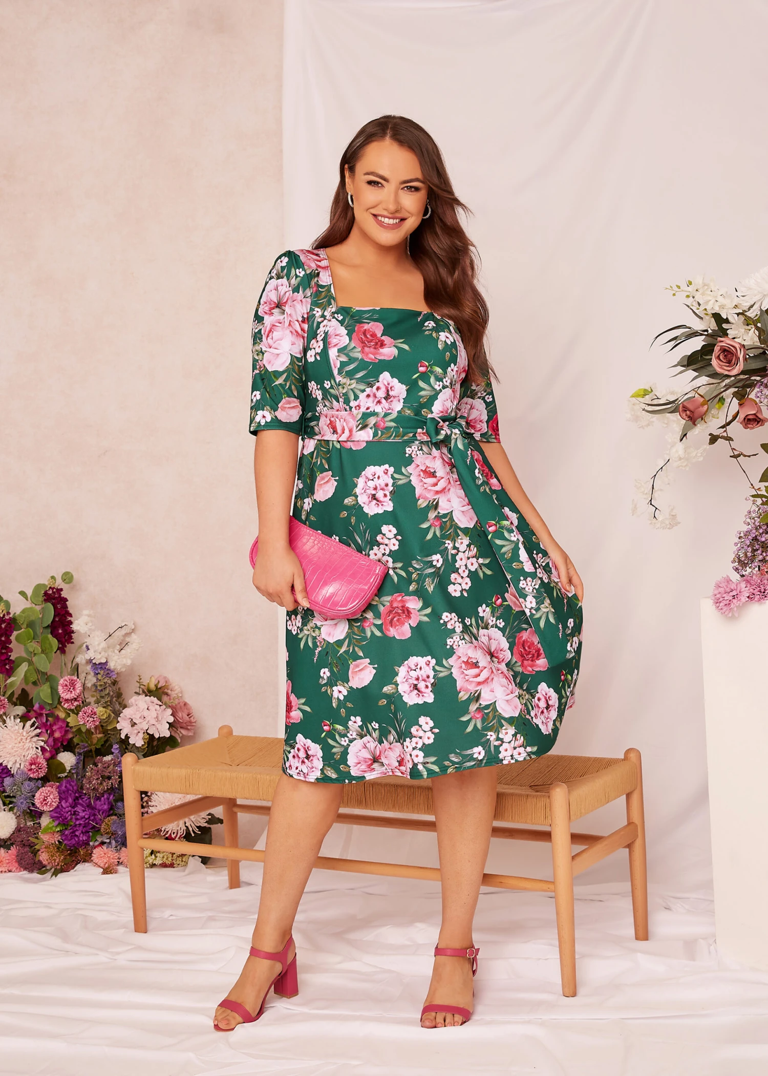 Get ready to make an entrance in this plus size wedding guest dress from Yours London. Comfortable in a jersey fabric, it features a floral print with a square neckline and short sleeves. Finishing with a belted tie waist to fit and flatter your curves, simply partner with heels and a clutch bag.