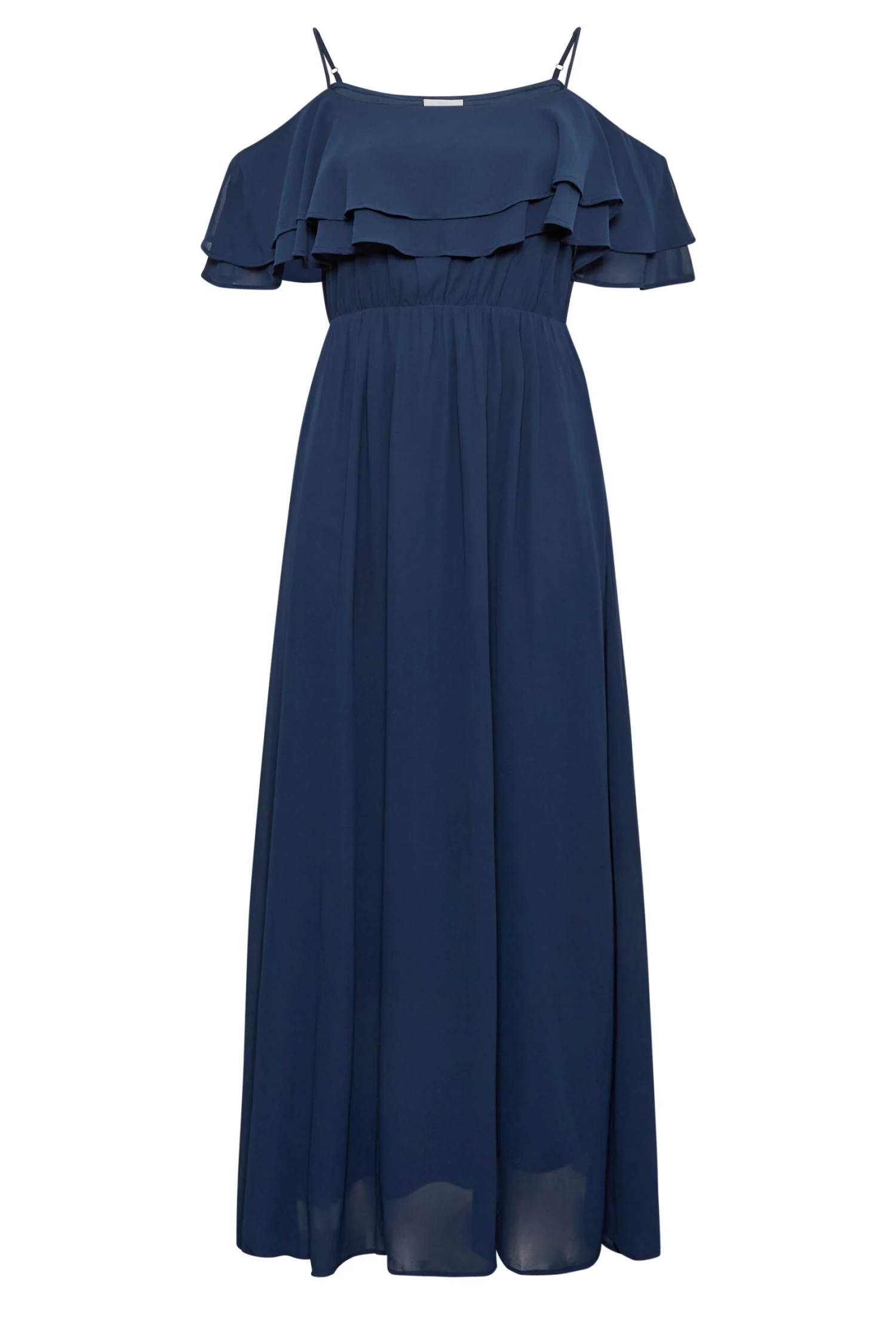 YOURS LONDON Curve Navy Blue Bardot Ruffle Maxi Dress -Saga Dresses Shop 26dbd90d da57 4a 161879 X