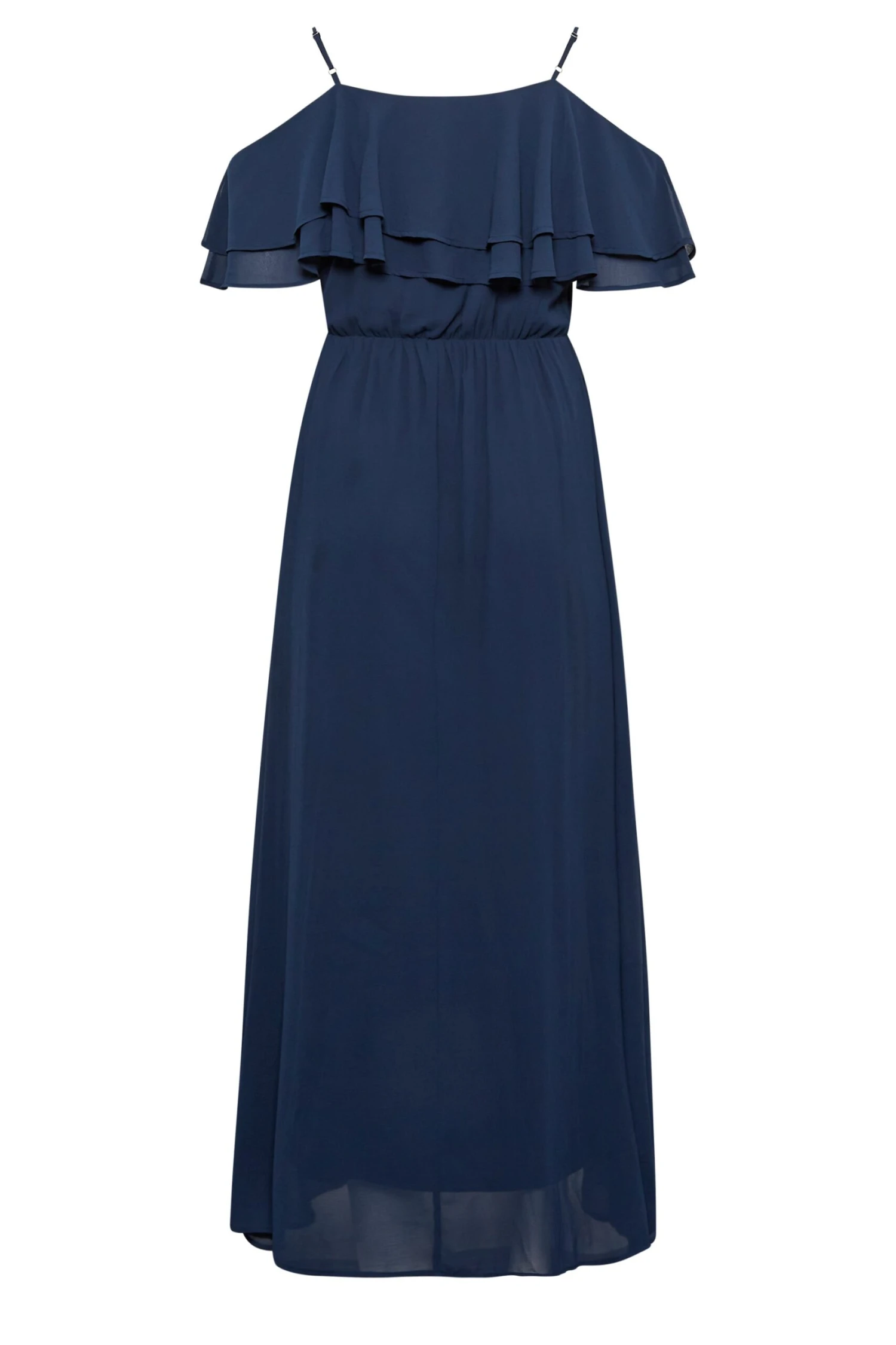 YOURS LONDON Curve Navy Blue Bardot Ruffle Maxi Dress