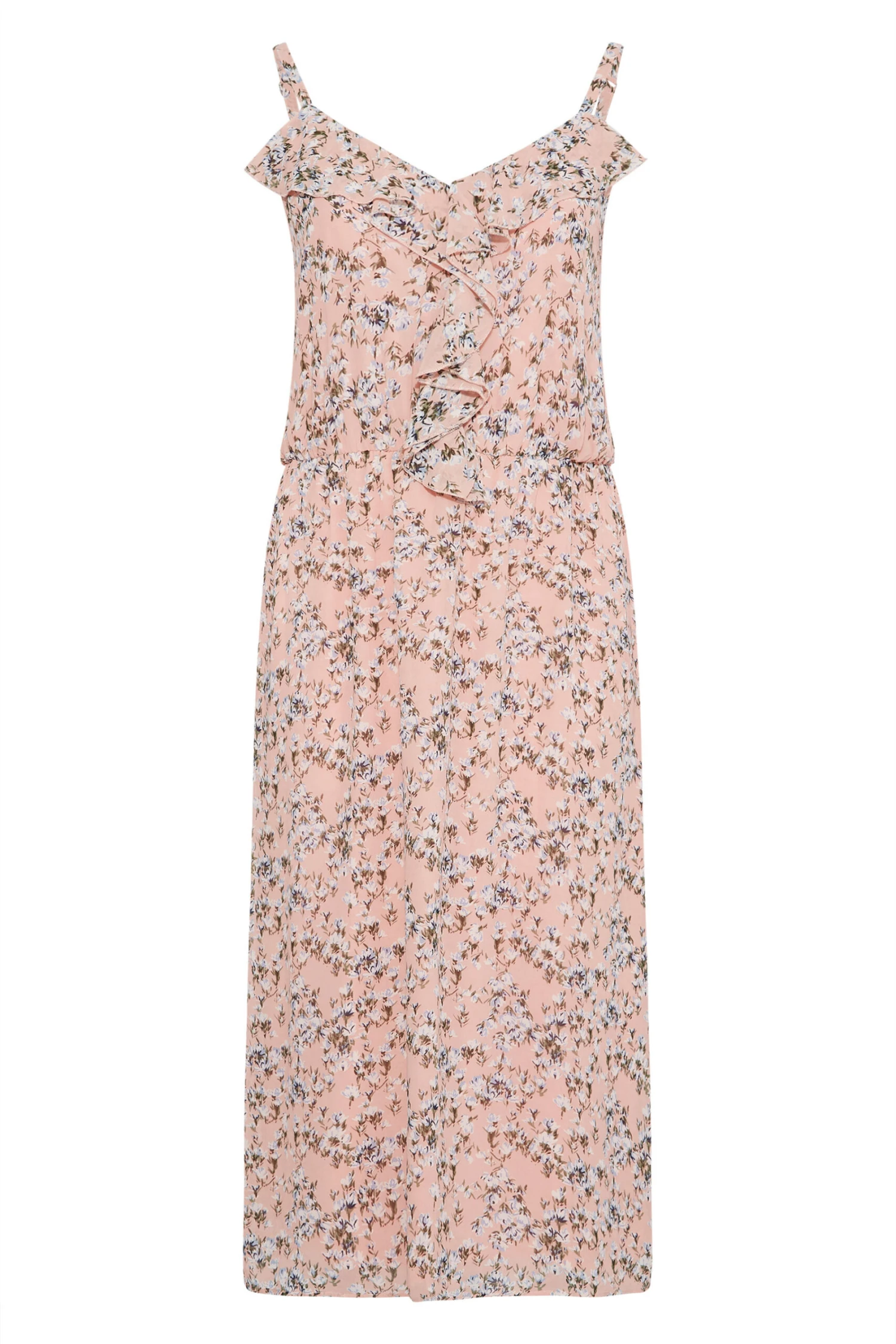 Opt for a pretty print for your next occasion with this Yours London plus size wedding guest dress. Made from a soft woven fabric, this plus size floral dress features a ruffle front, is sleeveless with adjustable straps, and is complete in a maxi length. Partner with heels and a shoulder bag for a look you can wear with confidence.