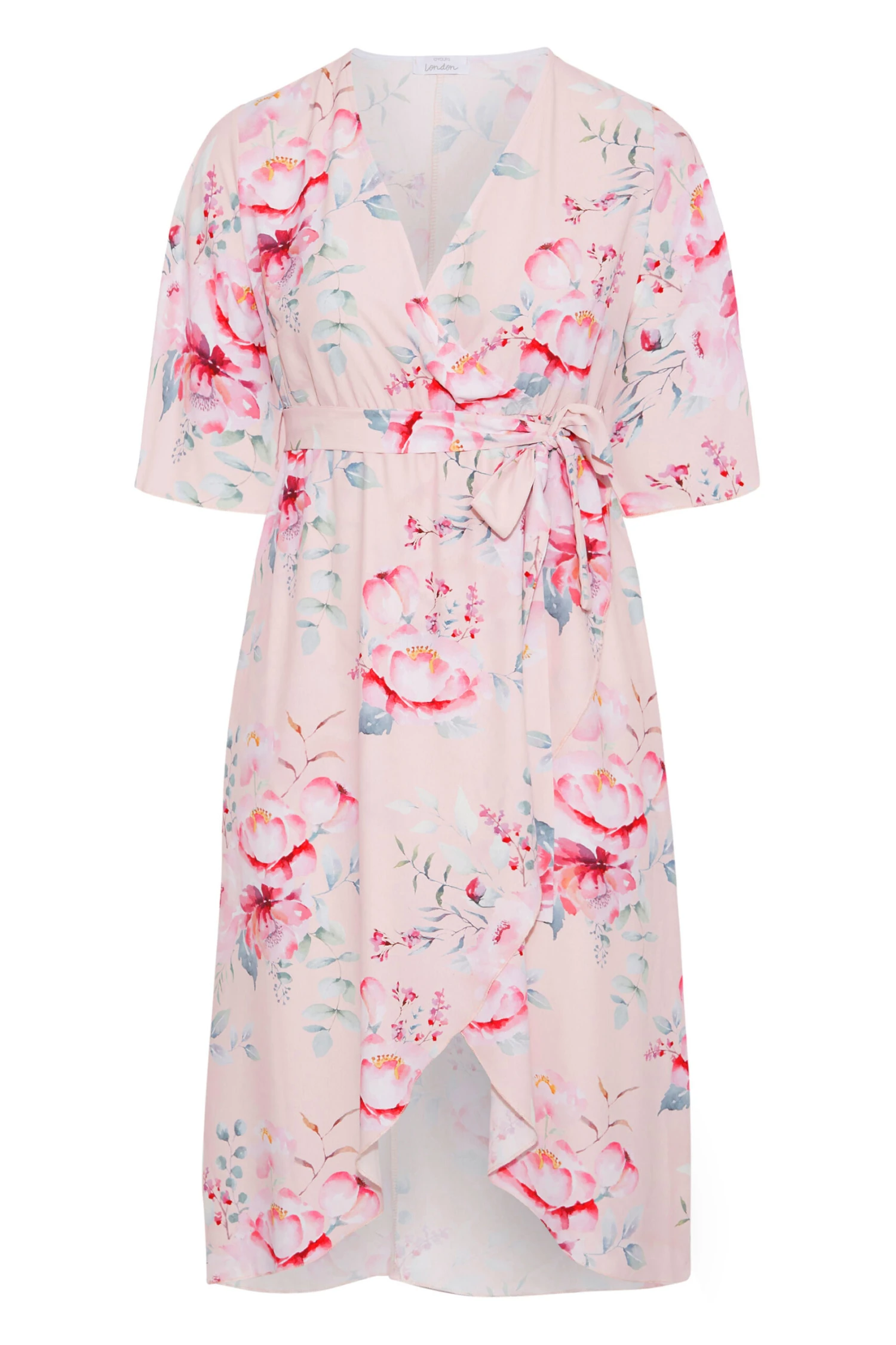 YOURS LONDON Curve Pink Floral Wrap Dress -Saga Dresses Shop 36926423 820a 41 161279 S