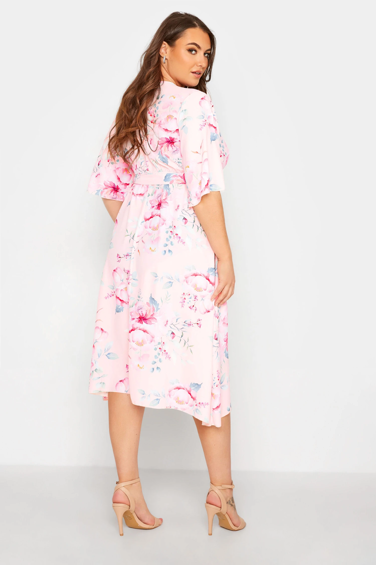 YOURS LONDON Curve Pink Floral Wrap Dress